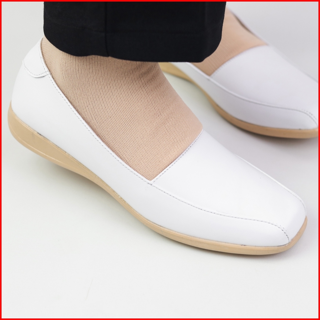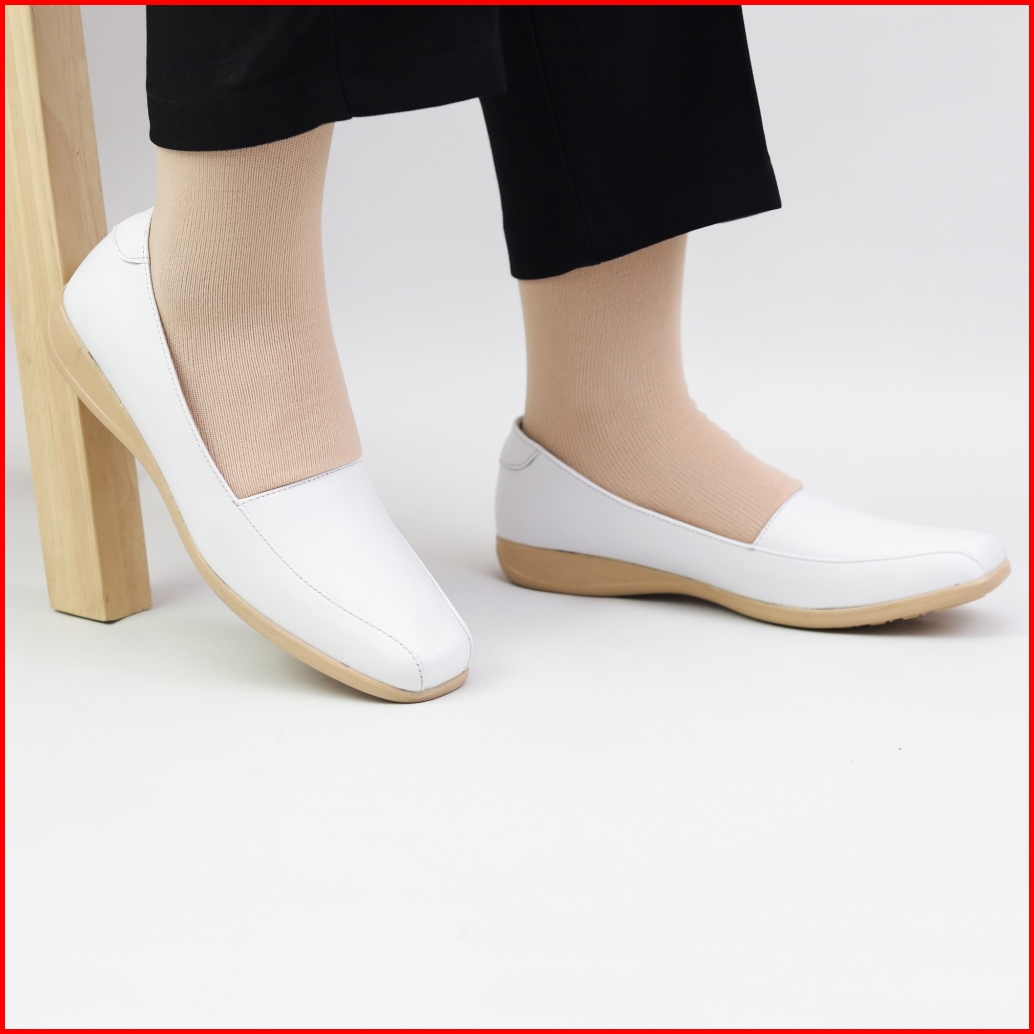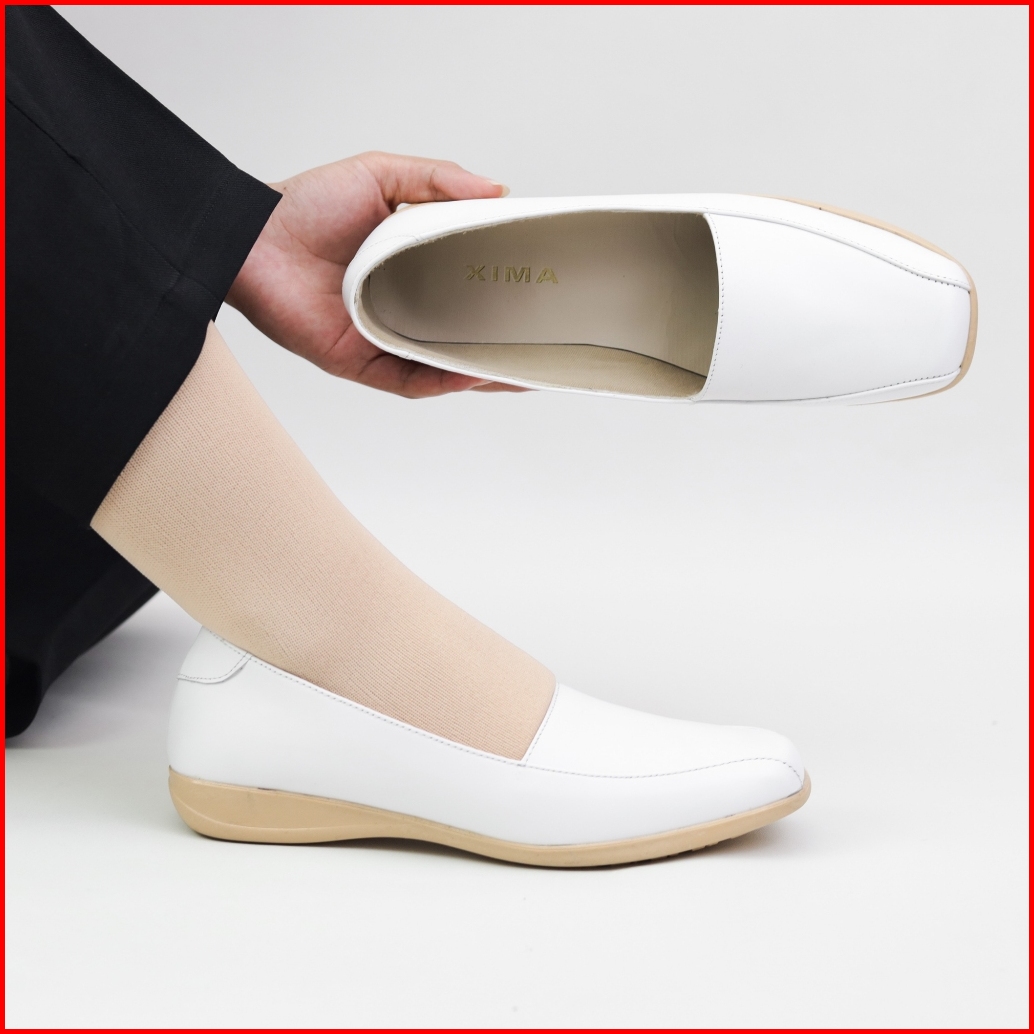 Sepatu Pantofel Wanita Putih Perawat Bidan Suster Stikes Akper 3 Cm Big Size 36 - 44 - Xima Marissa