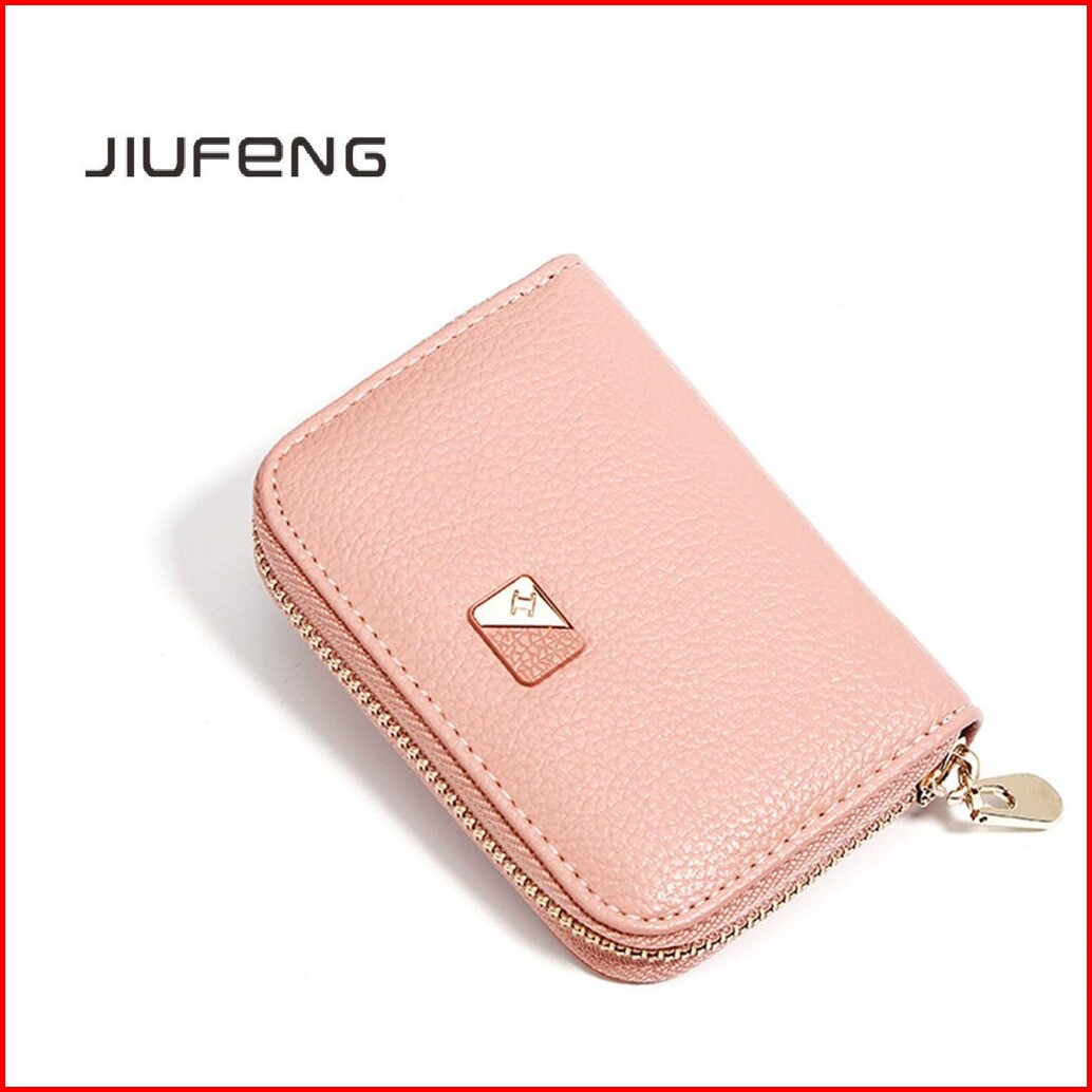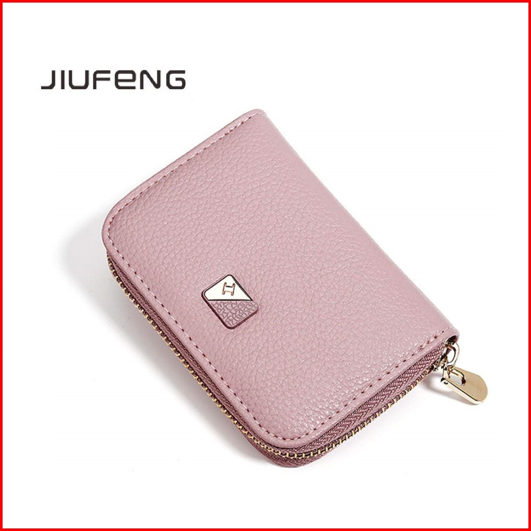 Jiufeng Dompet Kartu Wanita Untuk Pemblokiran Rfid Koin Serbaguna Kantong Pemegang Kartu