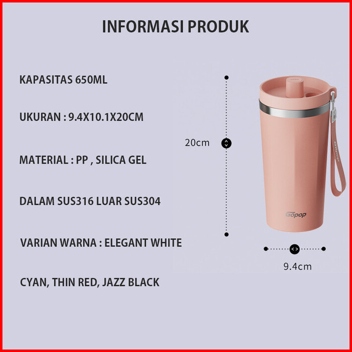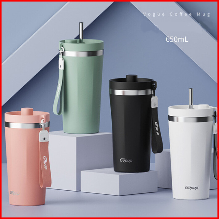 Tumbler Kopi Americano Cup Insulated Vaccum Mug Stainless 316 650ml Sedotan Tahan Panas Dingin Gopop