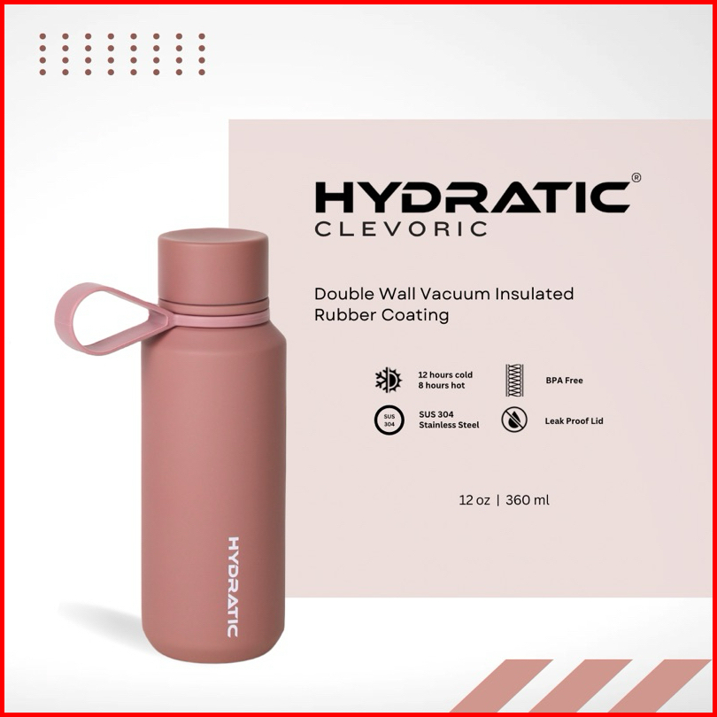 Botol Minum Tumbler Hydratic Clevoric 12oz 360ml - Tahan Panas Dingin 10-16 Jam - Smoke Pink - Stainless Steel Double