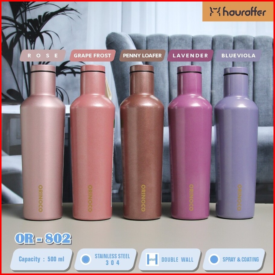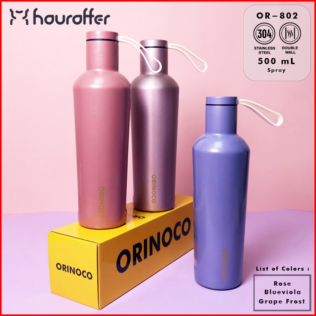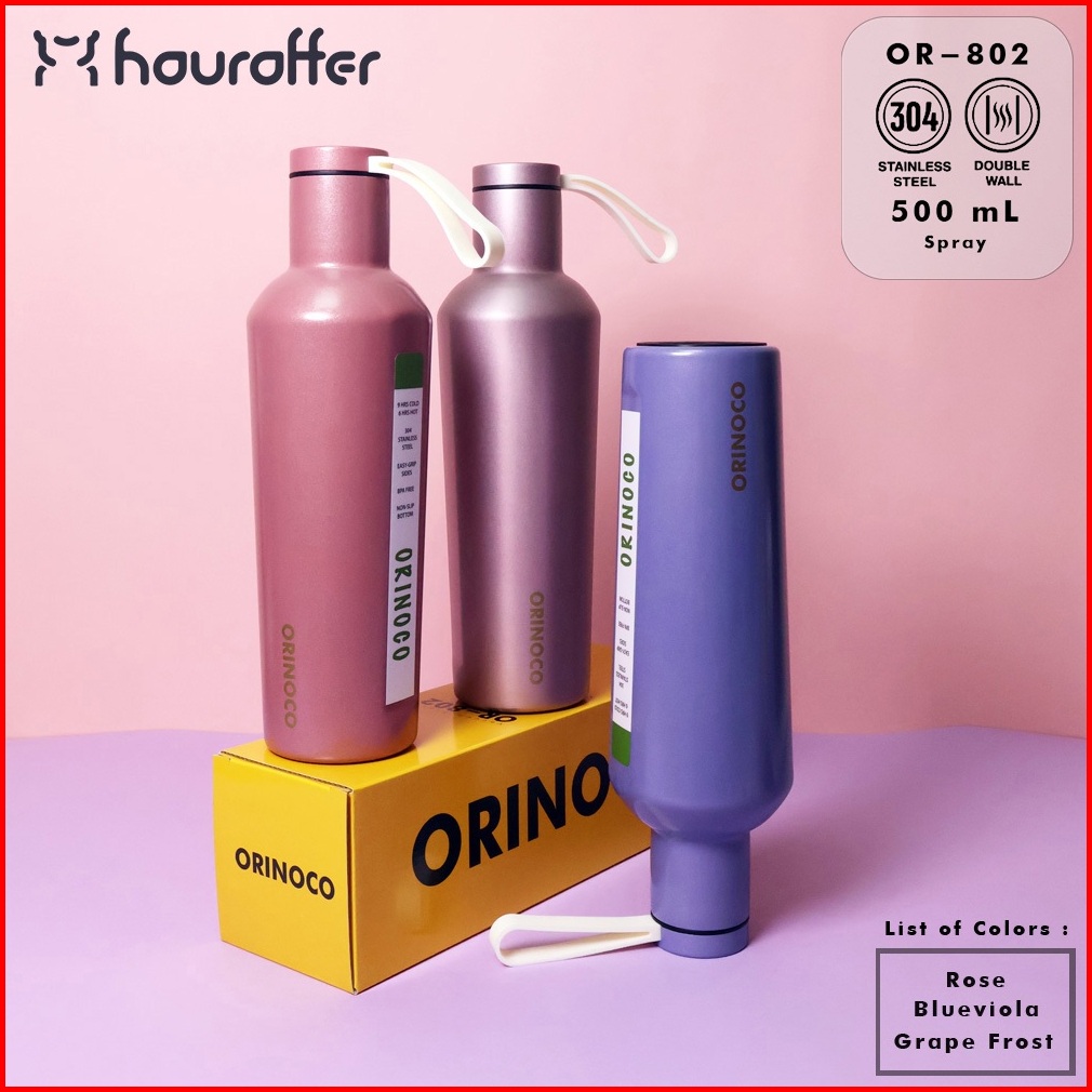 Houroffer Botol Tumbler Or-802 Thermos Flask Stainless Handle Silicone Hot Cold 500ml