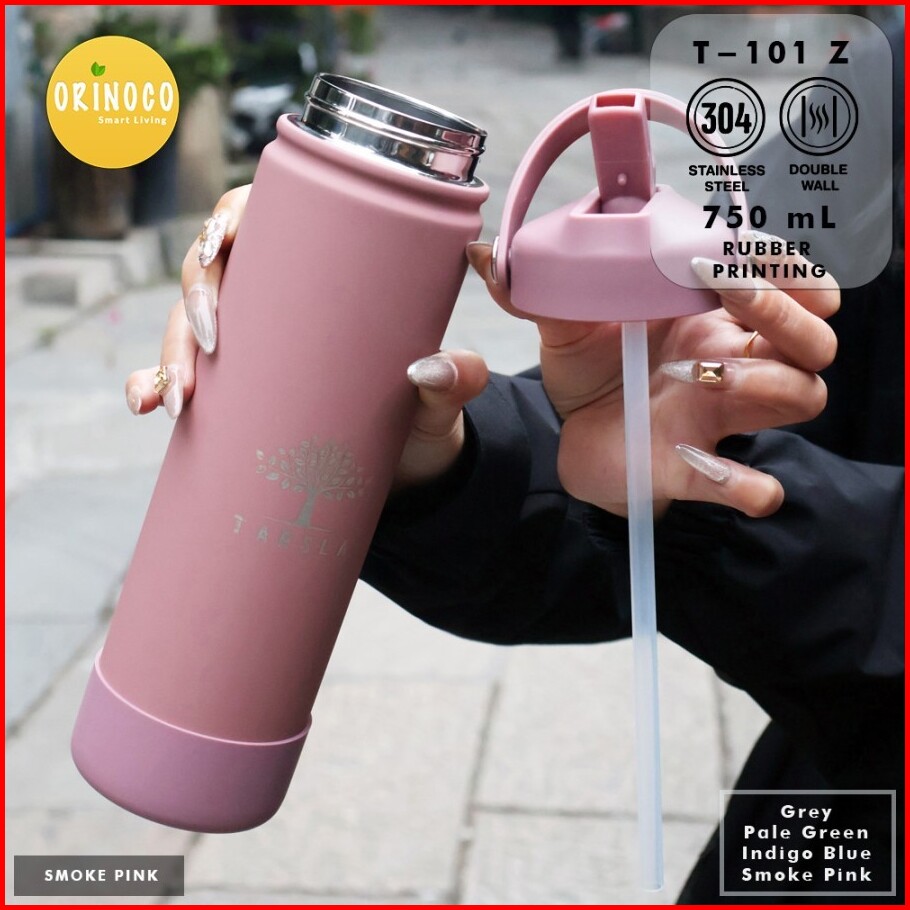 Botol Minum T-101z With Straw Thermos Color 750ml Rubber Printing Leakproof Keep Hot Cold 8-12 Jam