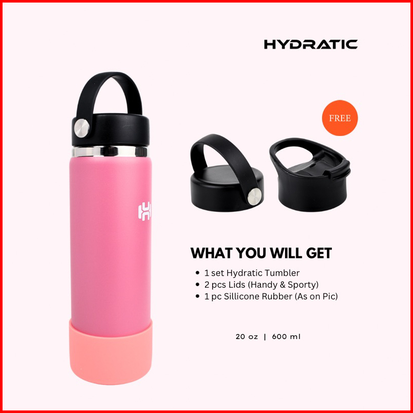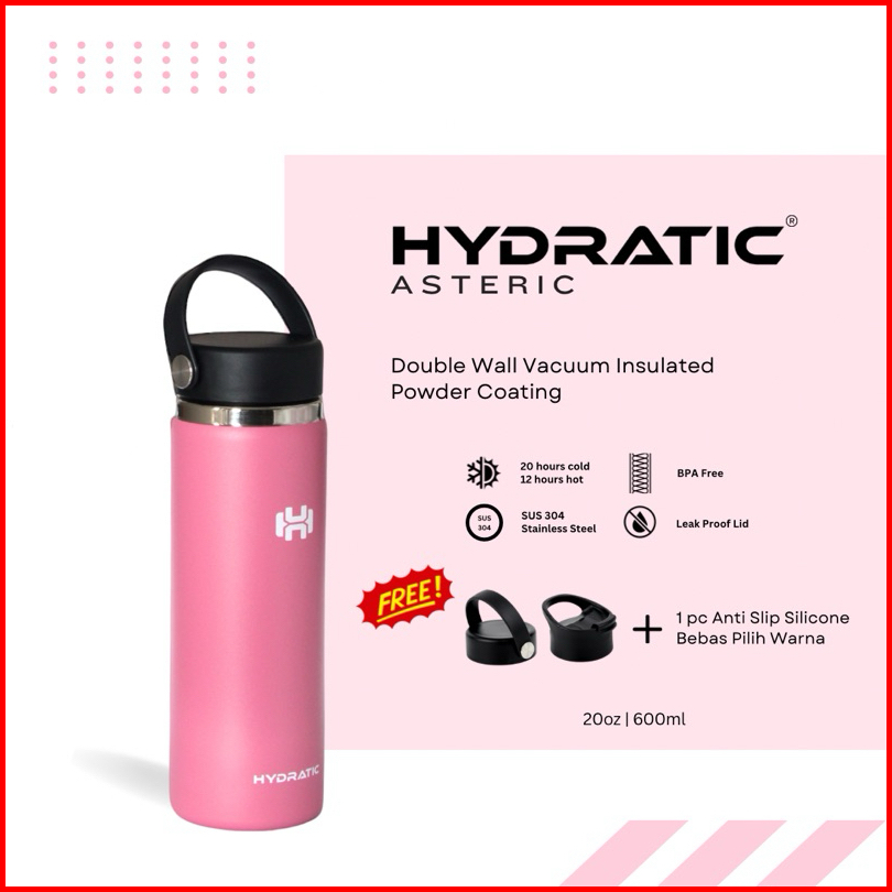 Botol Minum Tumbler Hydratic Asteric 20oz 600ml - Tahan Panas Dingin 12 - 24 Jam - Scotch Pink - 2 Tutup Stainless Steel
