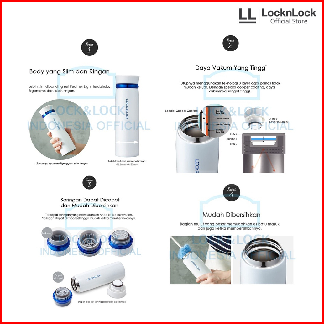 Lock N Lock - Feather Light Ring Vacuum Tumbler 450ml - Termos Air Minum Stainless 450 Ml - Lhc4131