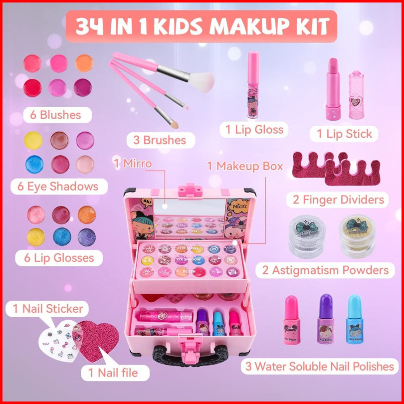 Ready Stock Children Pretend Plays Make Up Kit Set Mainan Make Up Anak Dengan Fungsi Asli - Kado Anak Cewek
