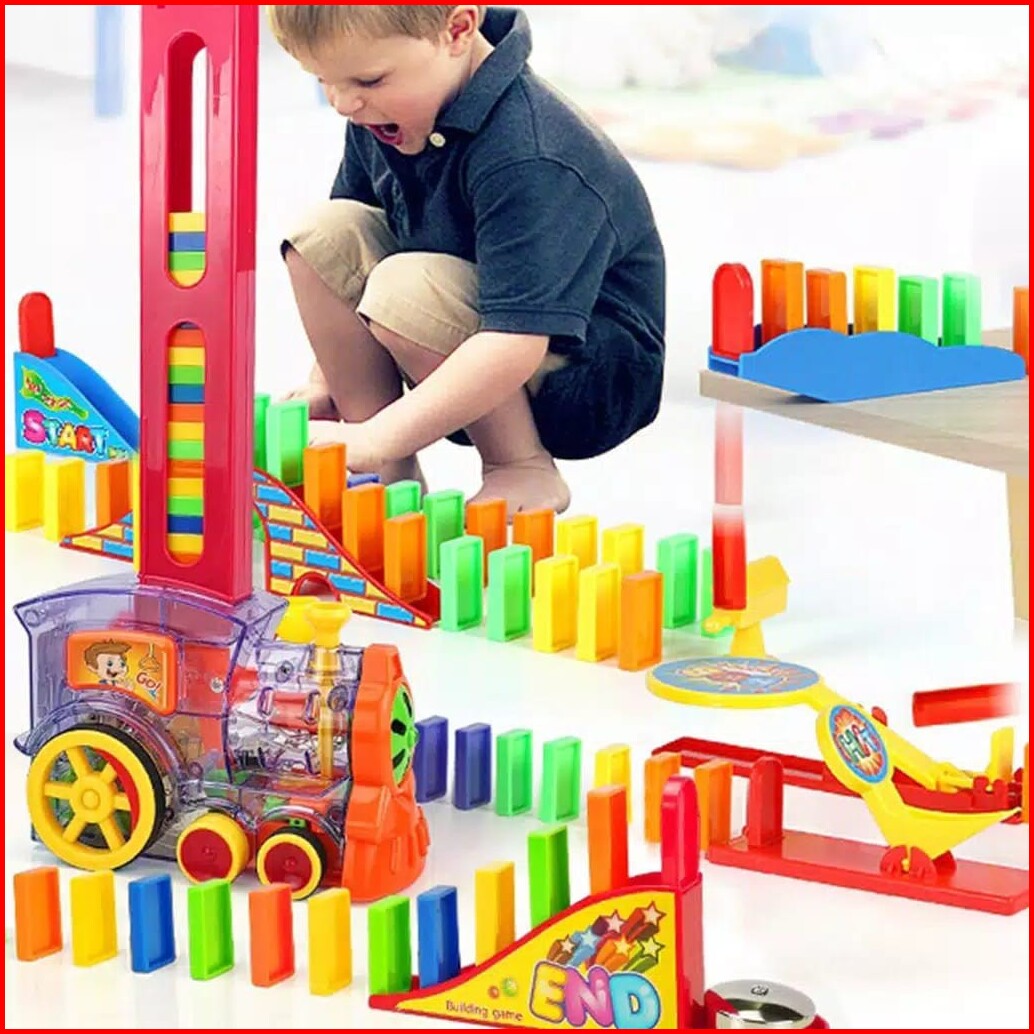 Mainan Anak Domino Train 80balok Kereta Api Penyusun Domino