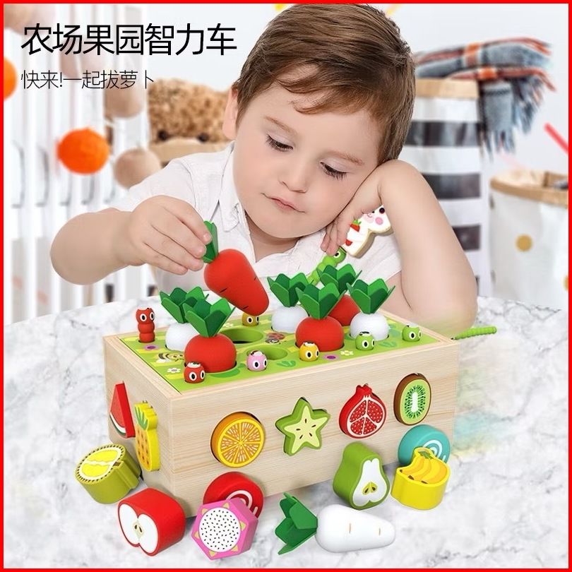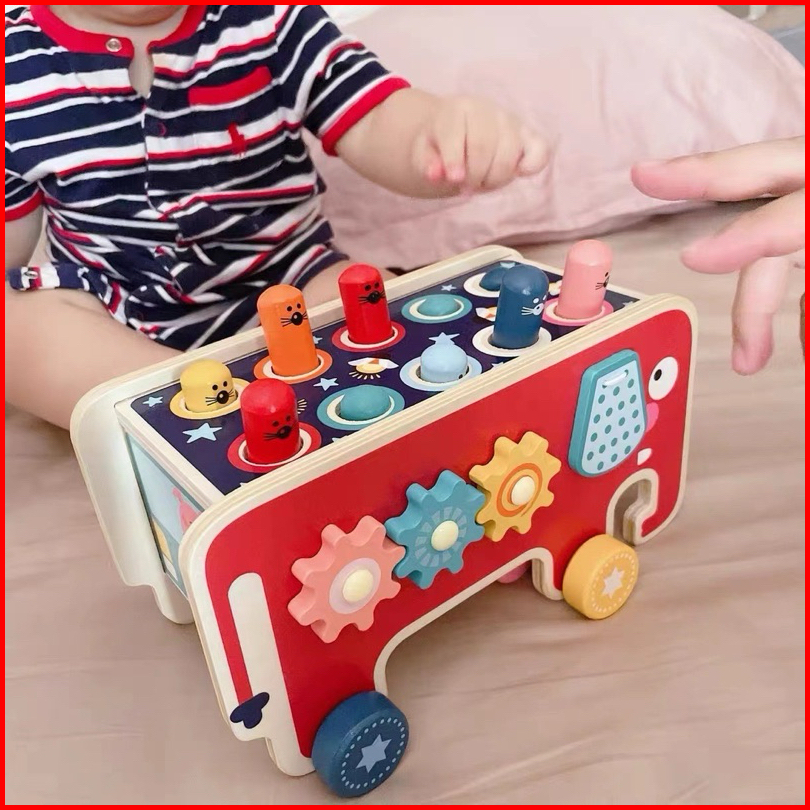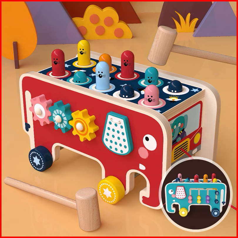 Kids Kingdom - Elephant Hitting Hamster Wooden Knock Toys Pull Push Truck Mainan Edukasi Anak Kayu Xylophone