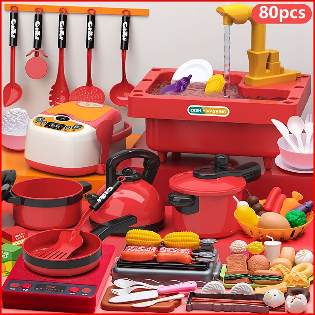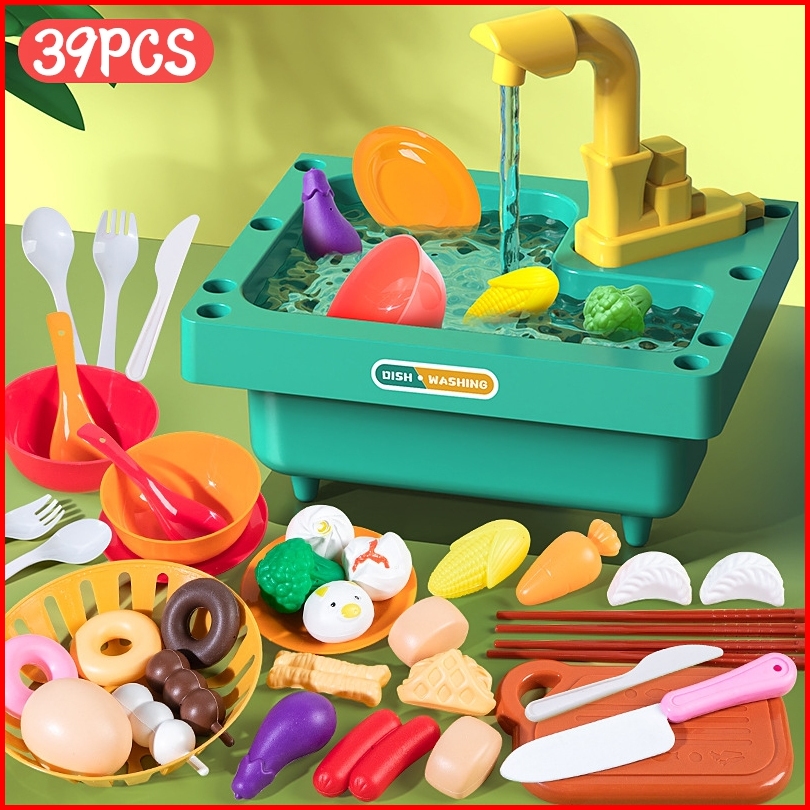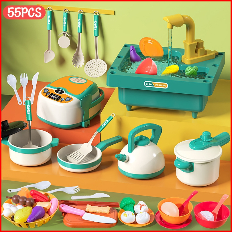 Zctoy 80 39 50 55 Pcs Mainan Dapur Anak Tempat Cuci Piring Set Mainan Kran Air Wastafel Dapur Cooking Set