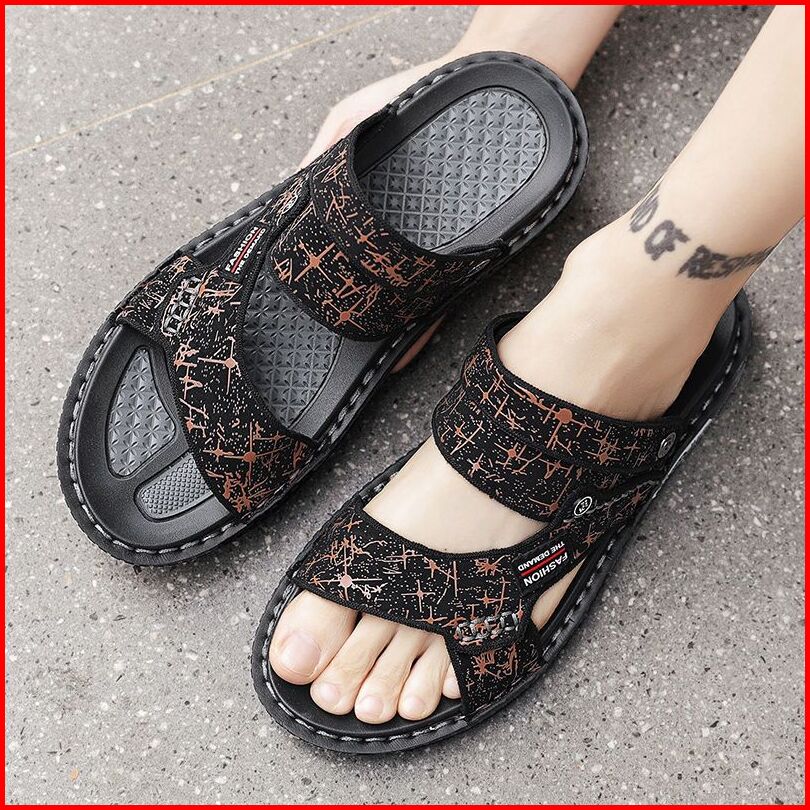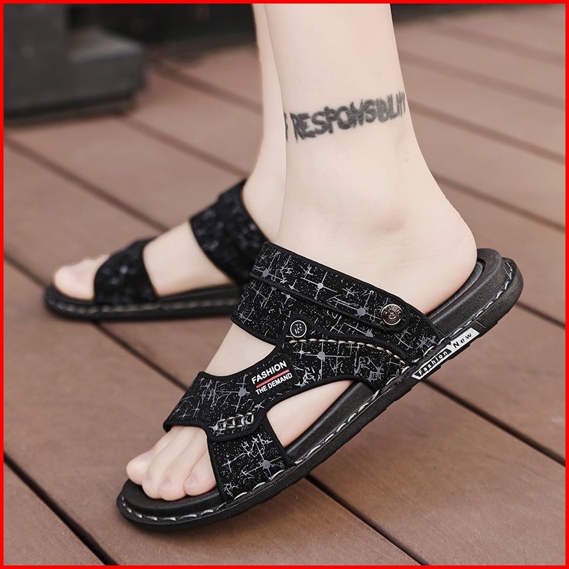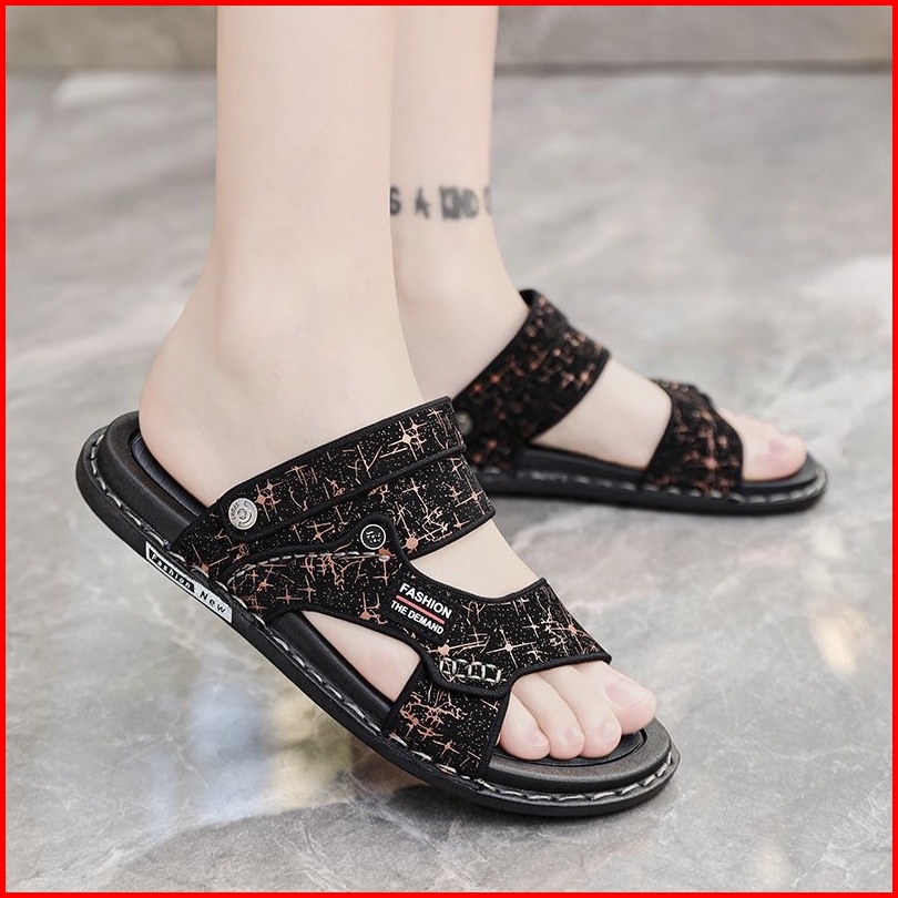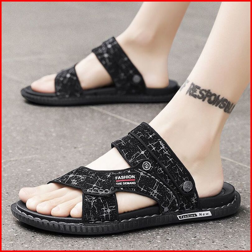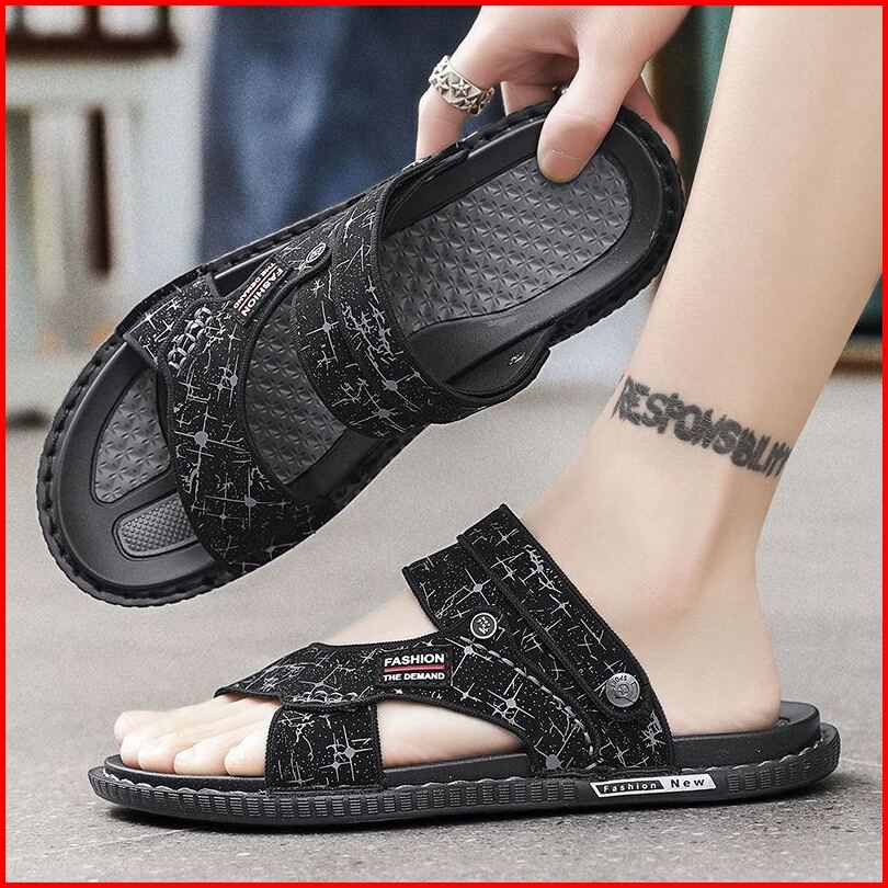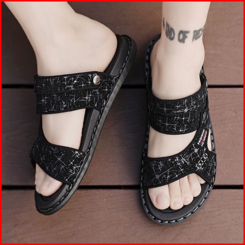 Sandal Pria Sendal Gunung Dewasa Keren Sandal Kulit Size 39--44 Tahan Air Non-slip Sol Karet Hitam