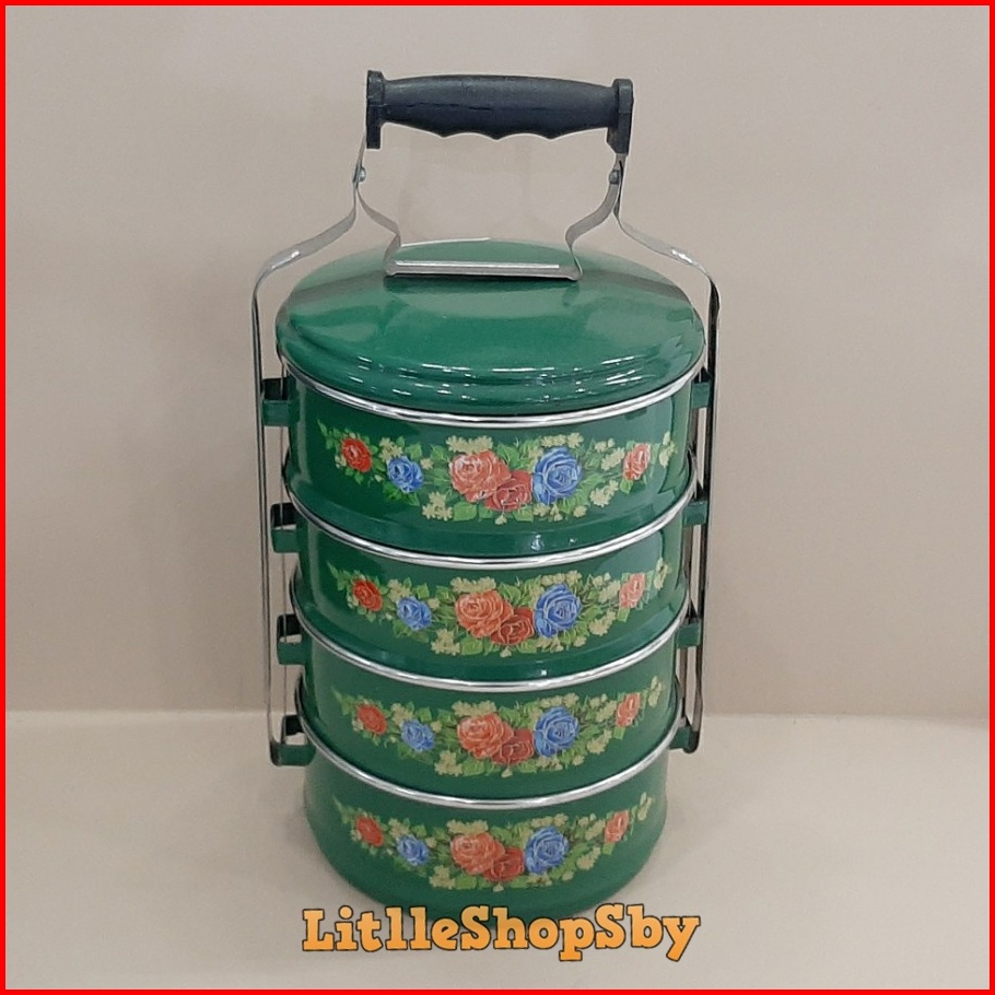 Rantang Enamel Susun 4 Ukuran 18cm Motif Mawar Hijau