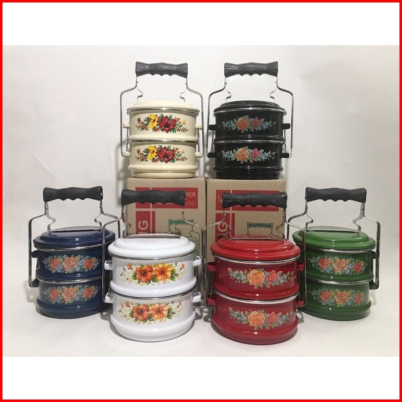 Rantang Enamel 14cm 2susun Lunch Box Dua Susun Kotak Makan