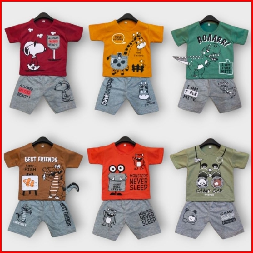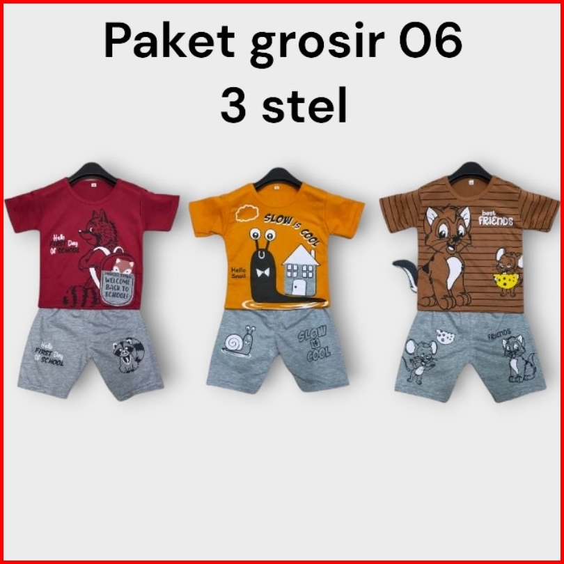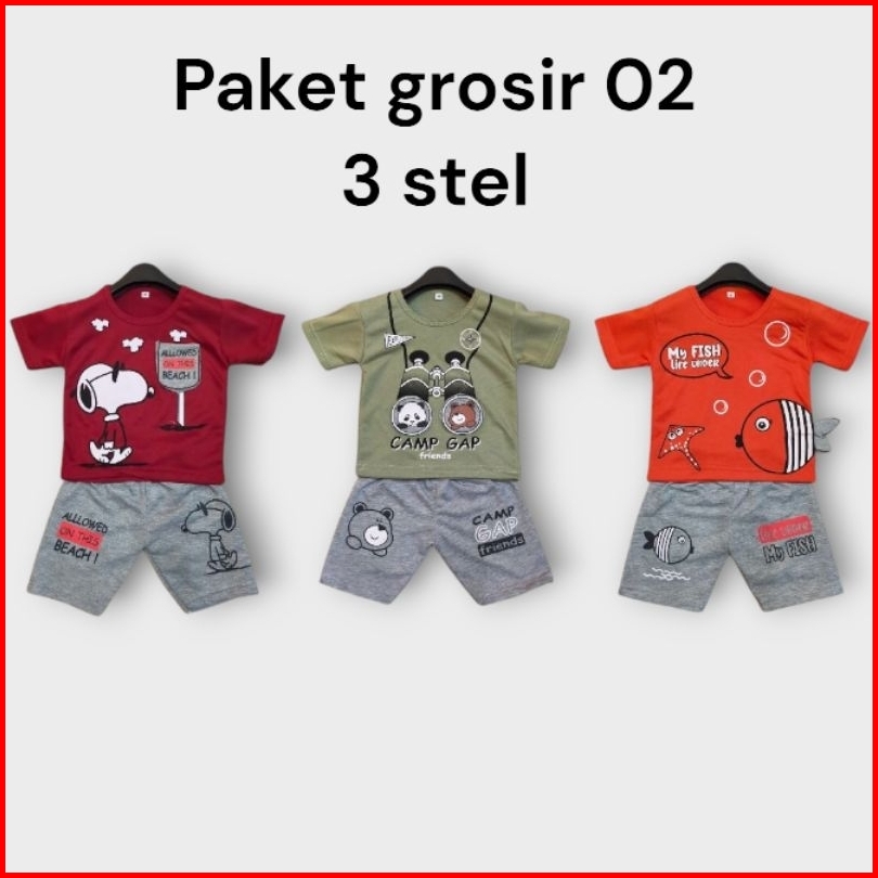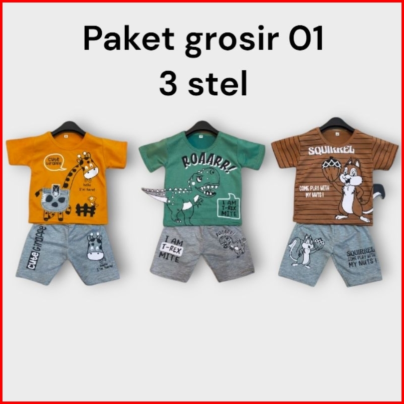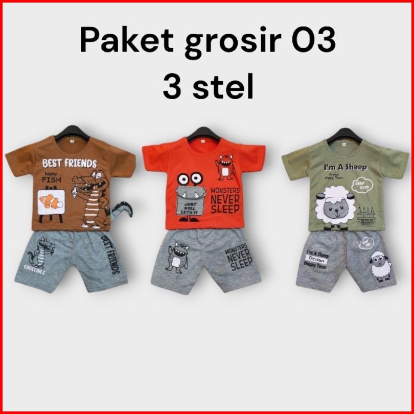 Paket Grosir 3 Stel Setelan Anak Cowok 0-4 Tahun Setelan Anak Laki-laki Baju Kaos Anak Cowok Laki