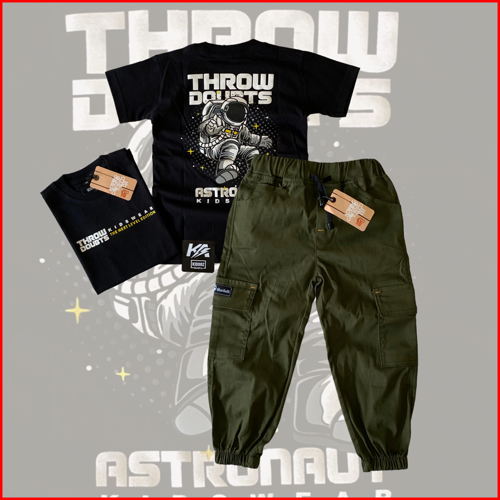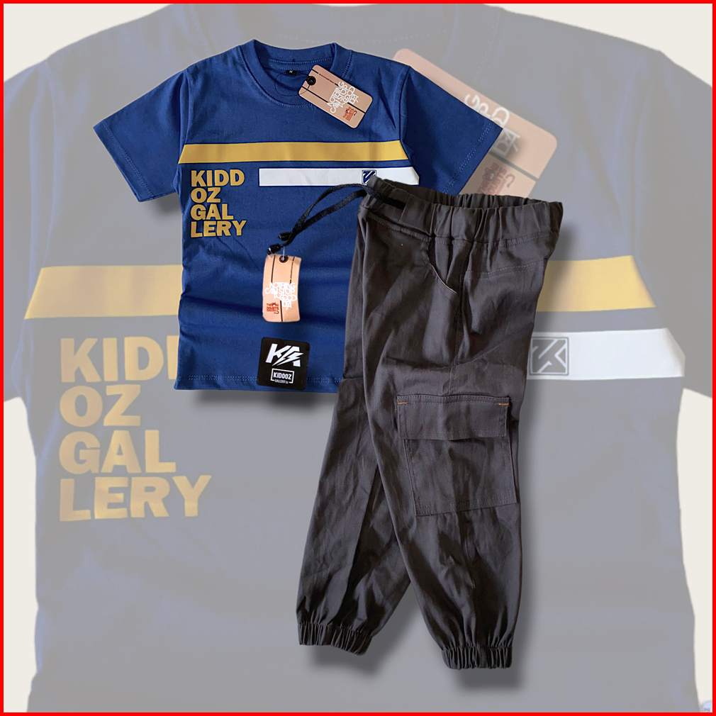 Setelan Celana Cargo Joger Anak Bahan Baby Canvas Tebal Usia 4-12 Tahun Dusty T17