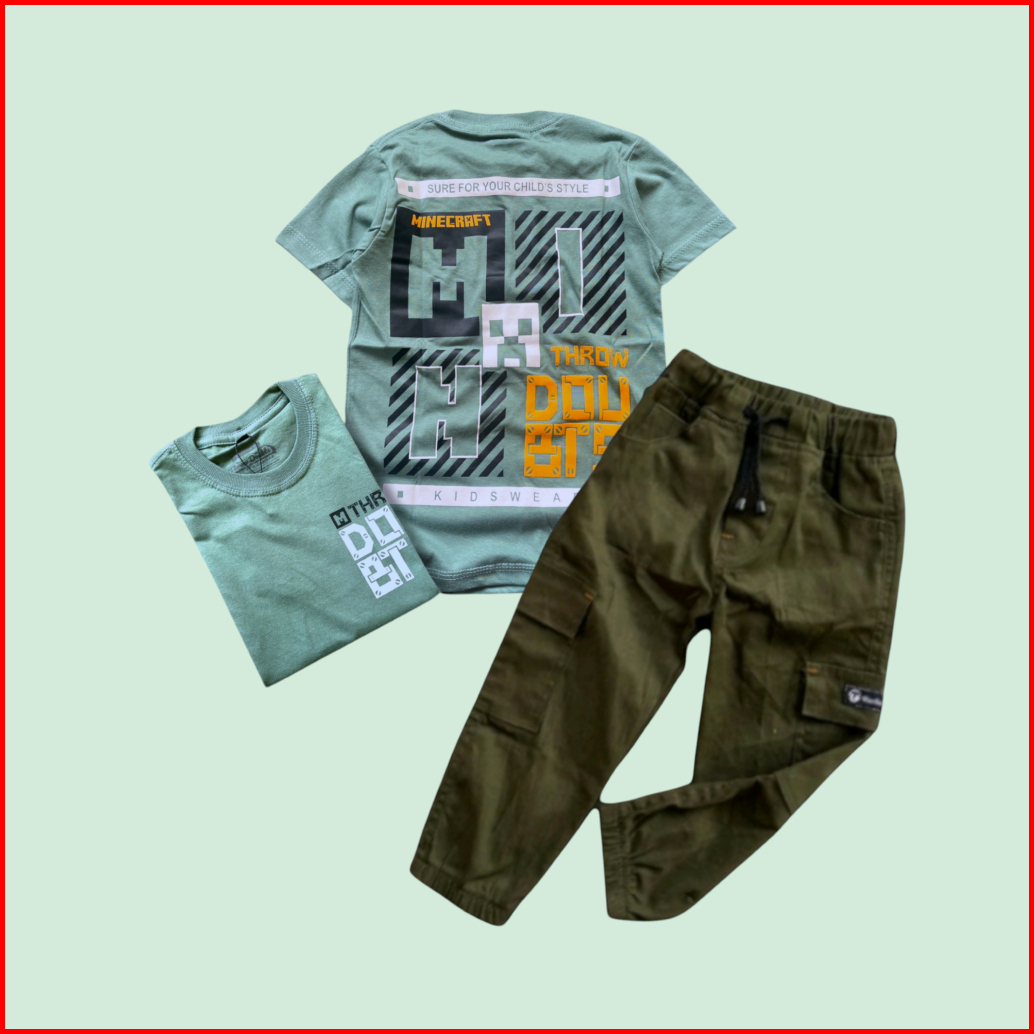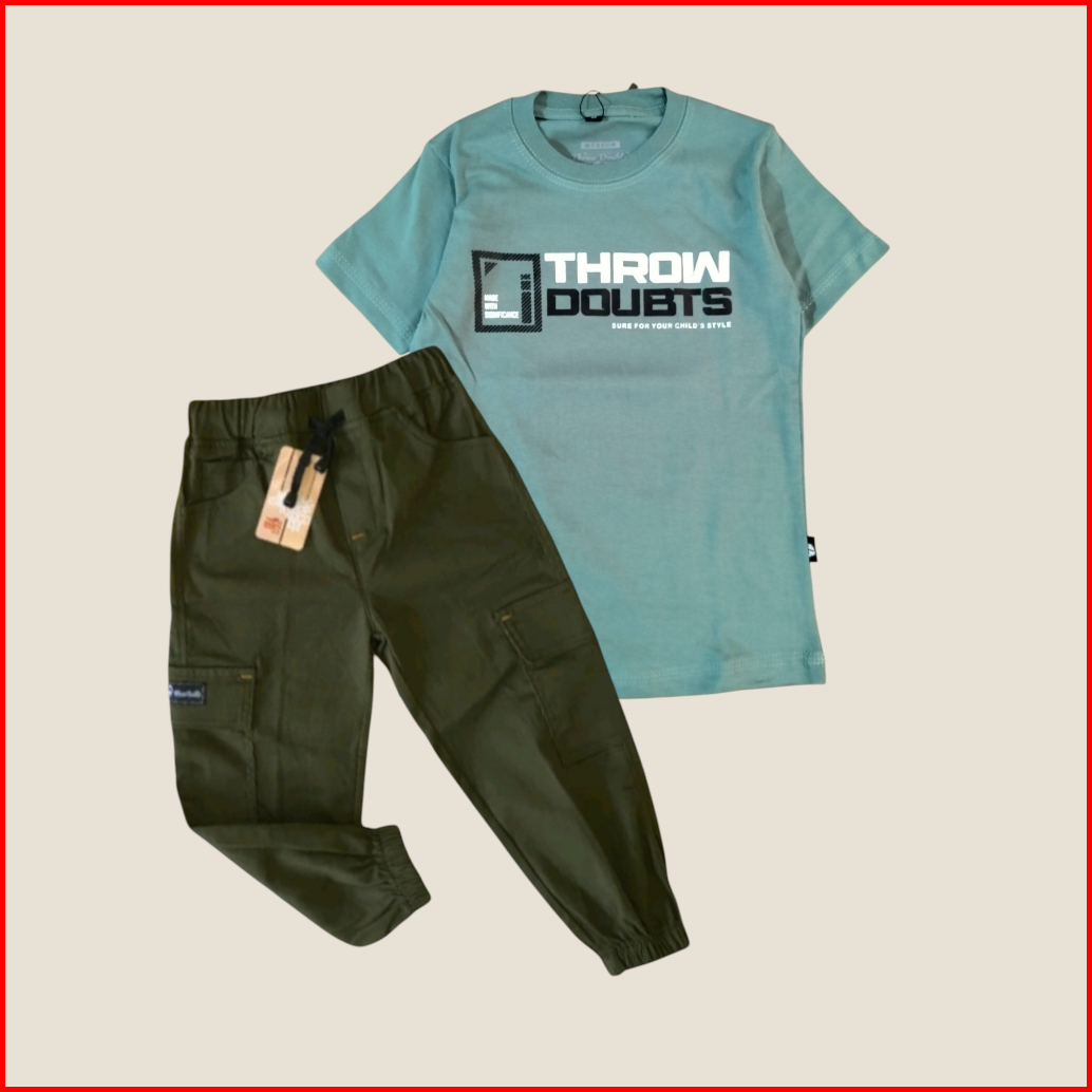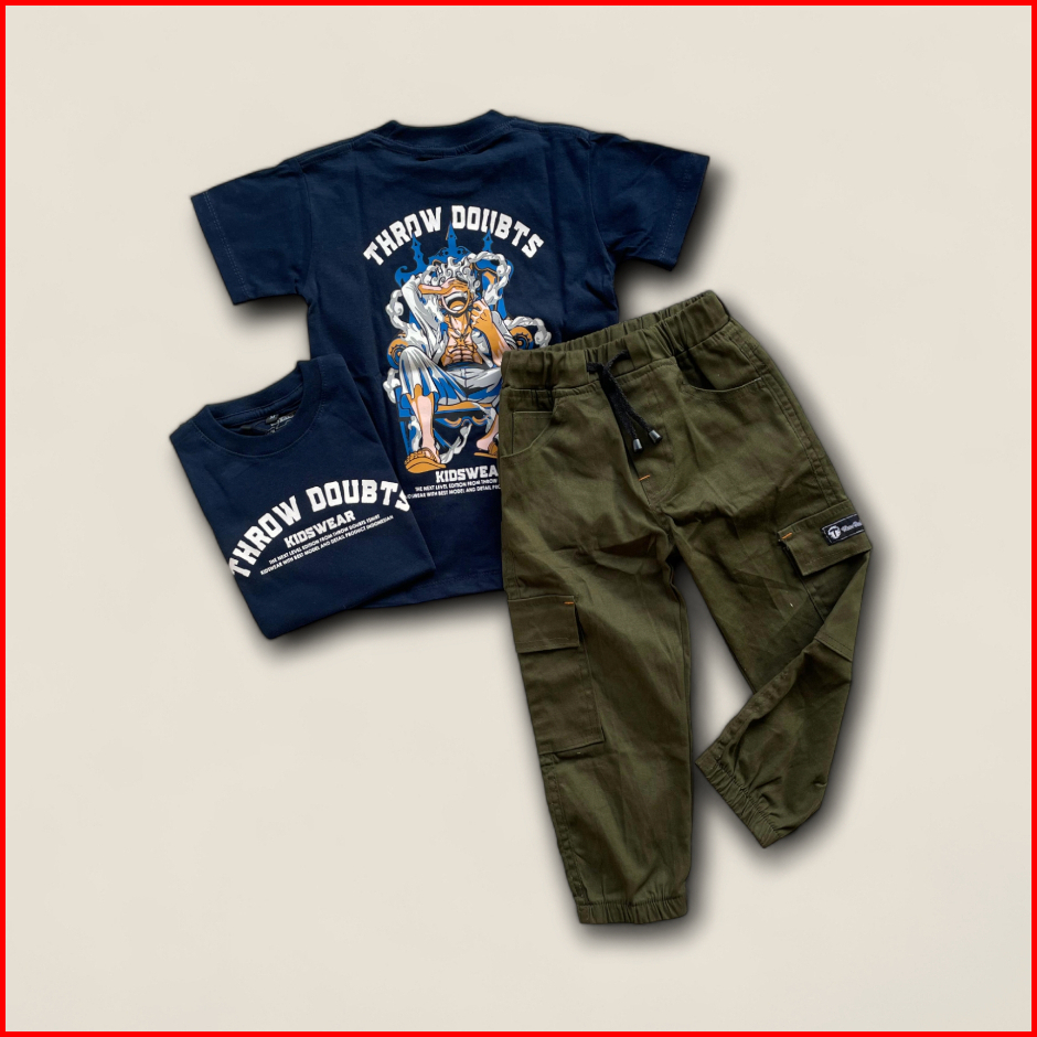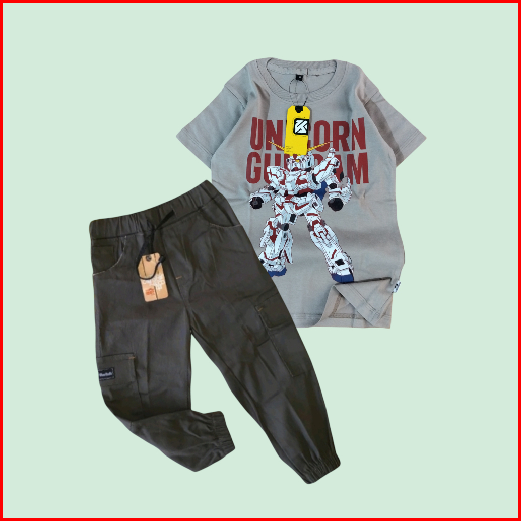 Setelan Cargo Panjang Dan Baju Kaos Anak Laki-laki Setelan Anak Kekinian