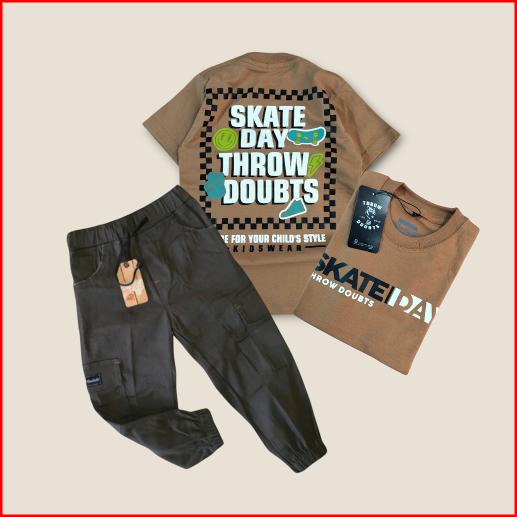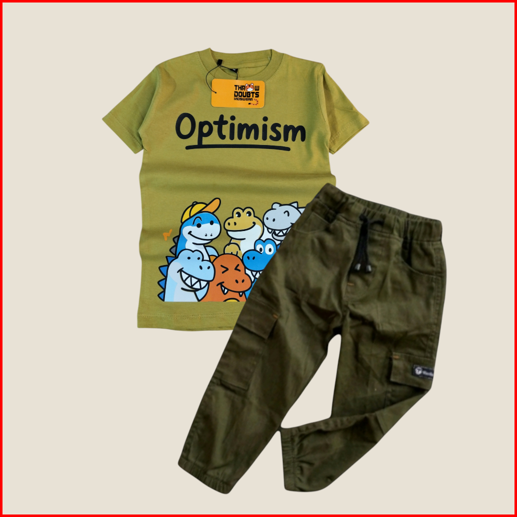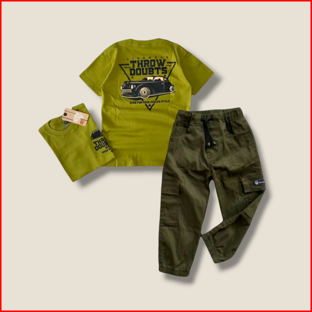 Setelan Cargo Panjang Dan Baju Kaos Anak Laki-laki Setelan Anak Kekinian