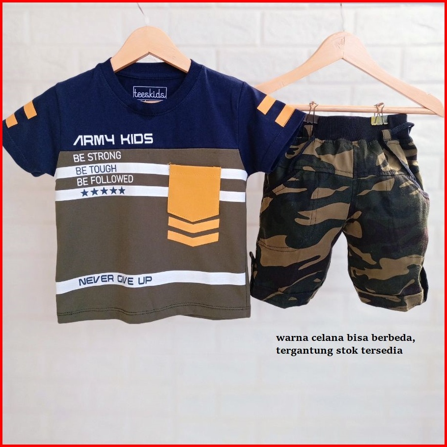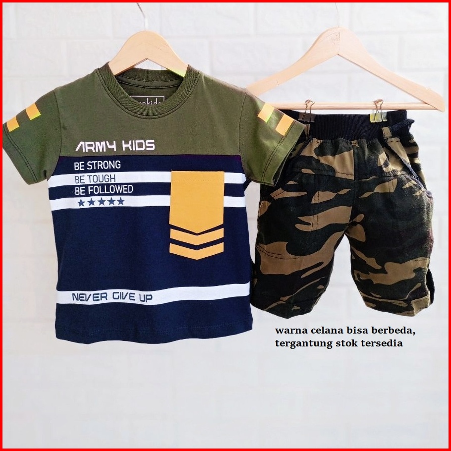 Setelan Anak Laki Distro Premium Celana Pendek Lc Army 1-9 Tahun Baju Kaos Anak Cowok Army Kids