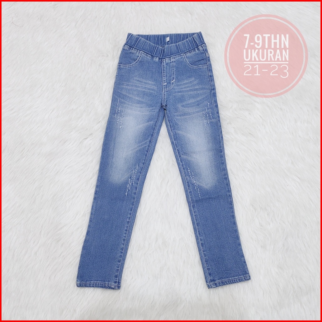 Celana Jeans Anak Perempuan Model Pinggang Karet Cakar Wisker 7-9thn