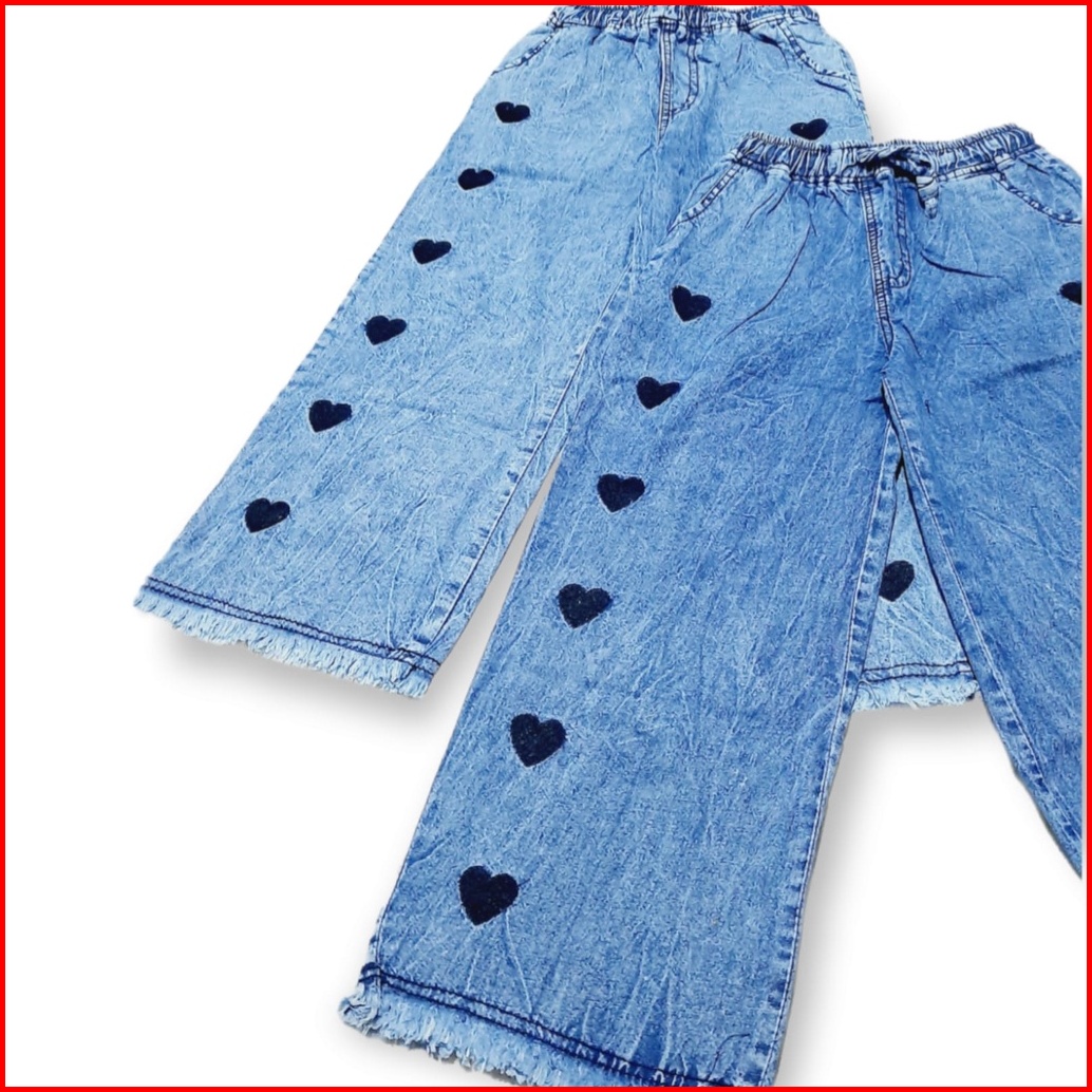 Kulot Jeans Love Anak Perempuan 7-13 Tahun Kulot Jeans Anak Model Terbaru Celana Jeans Anak Perempuan Kulot Love Anak Ku