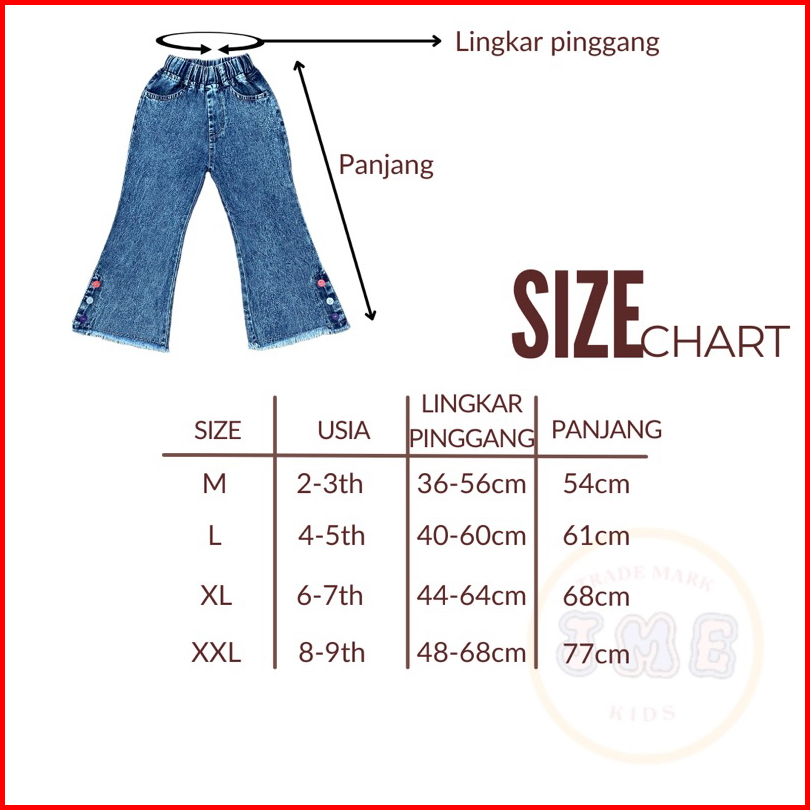 Jme Kids Cutbray - Celana Cutbray Jeans Anak Perempuan Usia 2th-9th Model Kancing Bawah