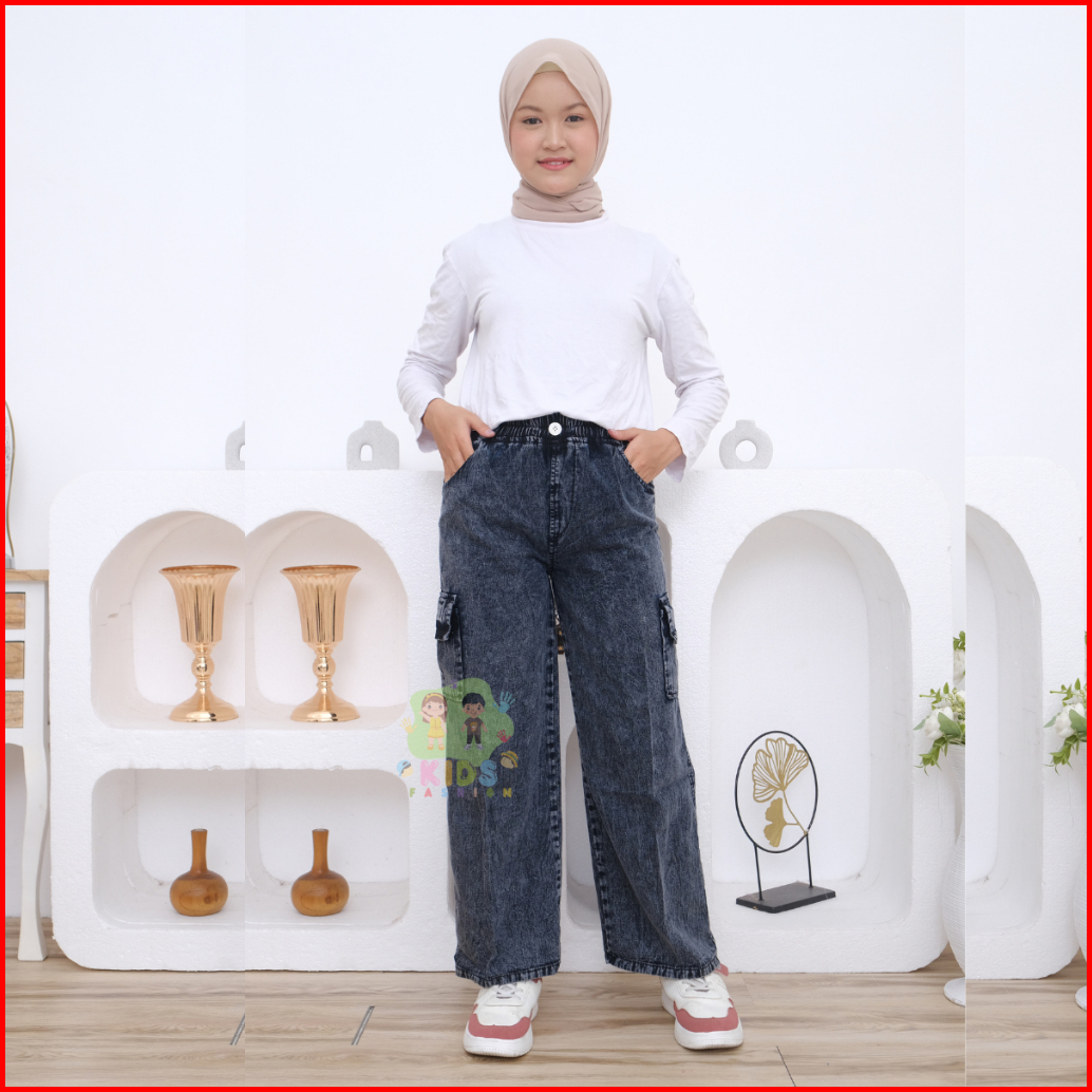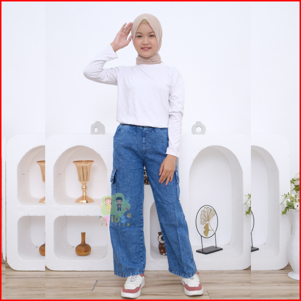 Celana Cargo Anak I Celana Kulot Cargo Anak Perempuan I Celana Jeans Anak Perempuan 7-15 Tahun