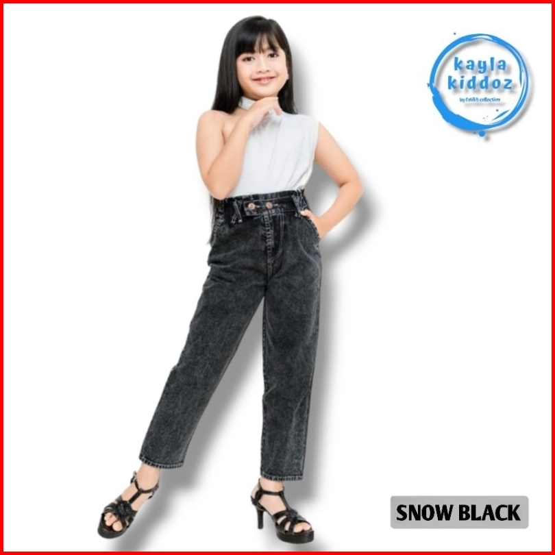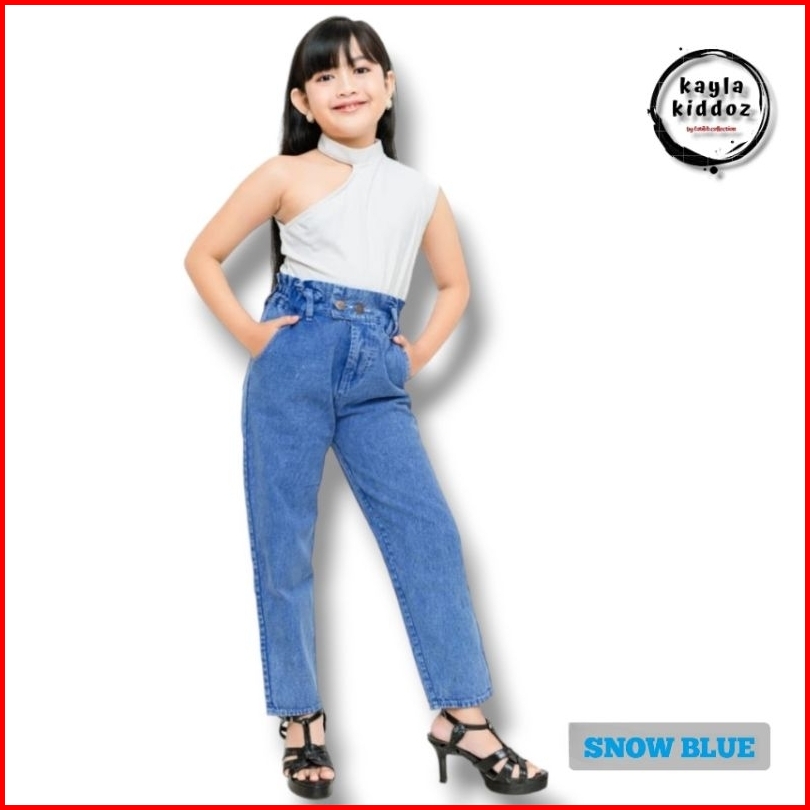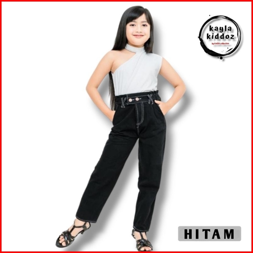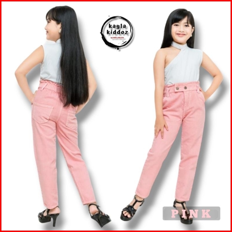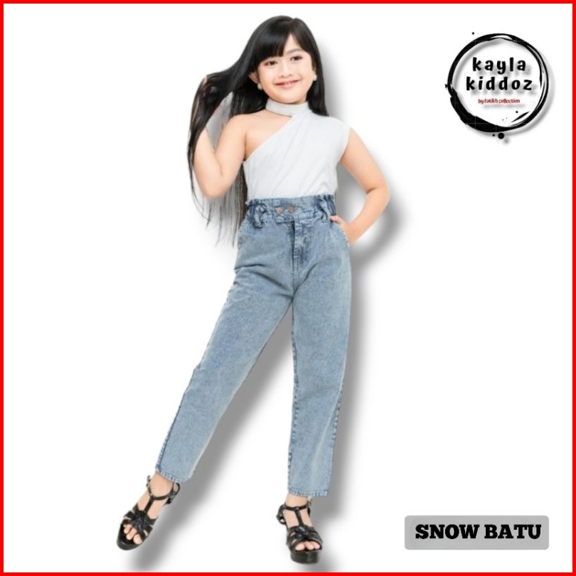 Boyfriend Kids Jeans Panjang Anak Perempuan Usia 7-14 Tahun Model Tali Silang Kayla Kiddoz