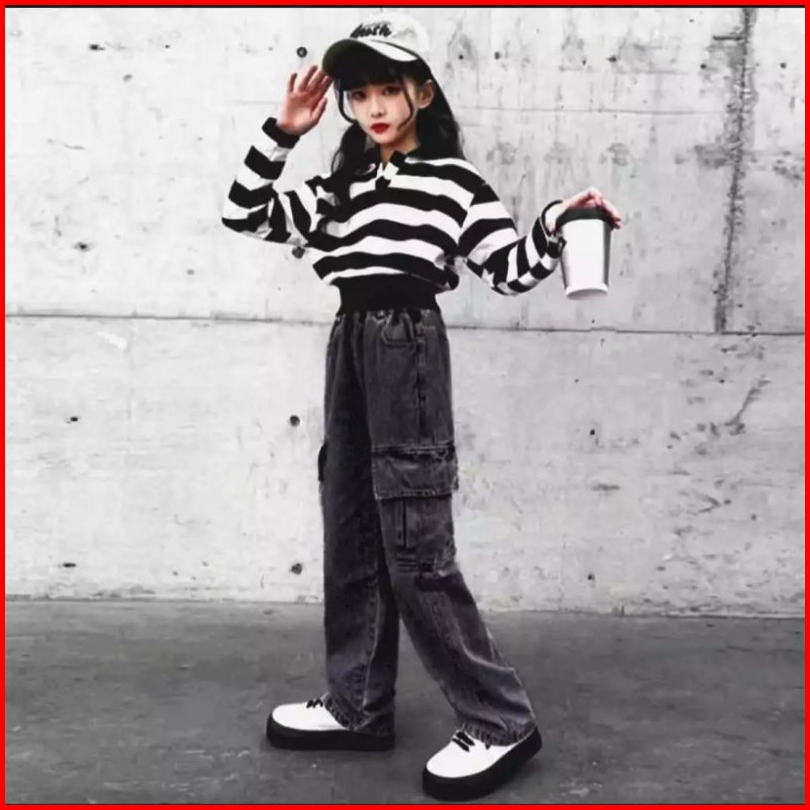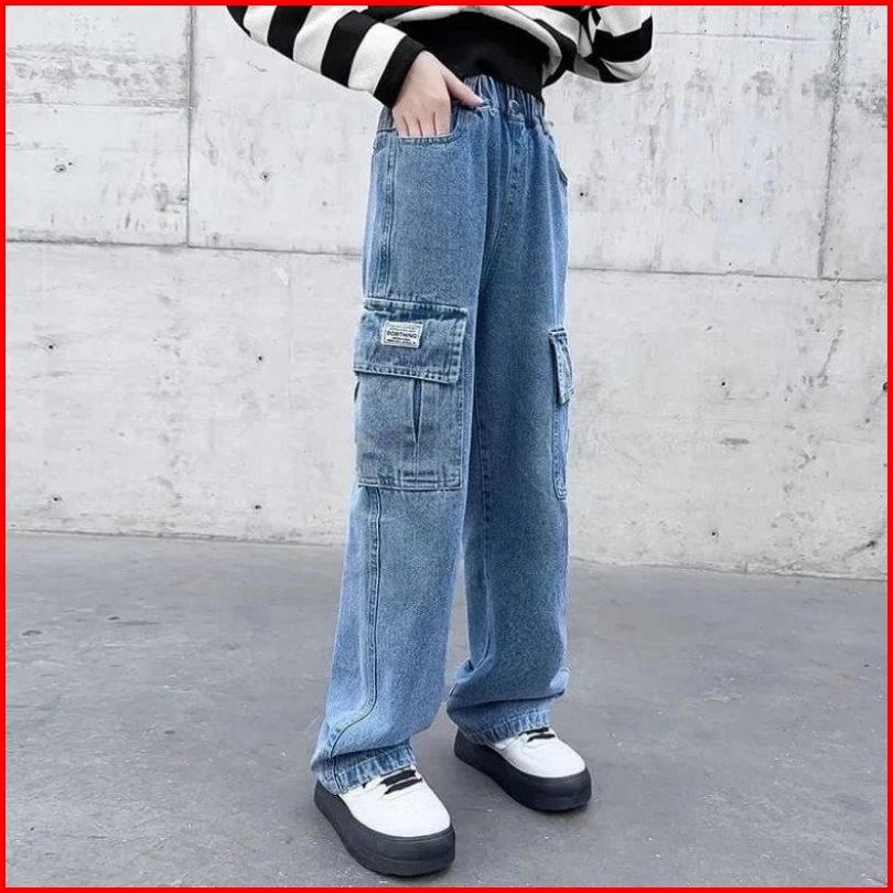 Kulot Anak Jeans Cargo Perempuan 8 Tahun Sampai 13 Tahun