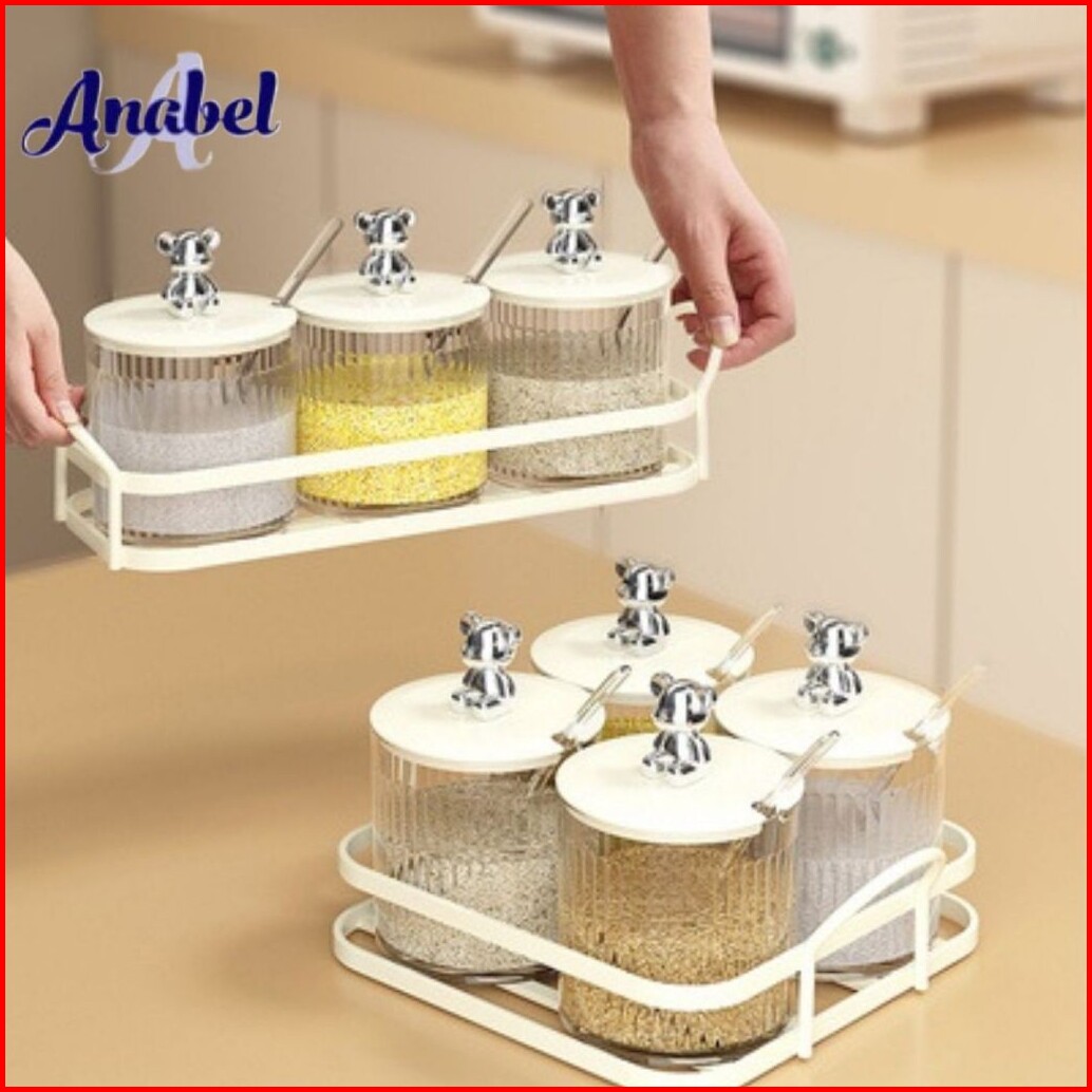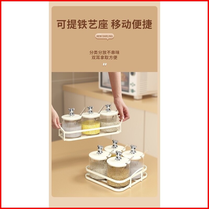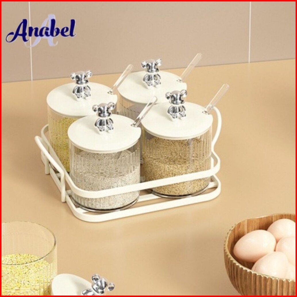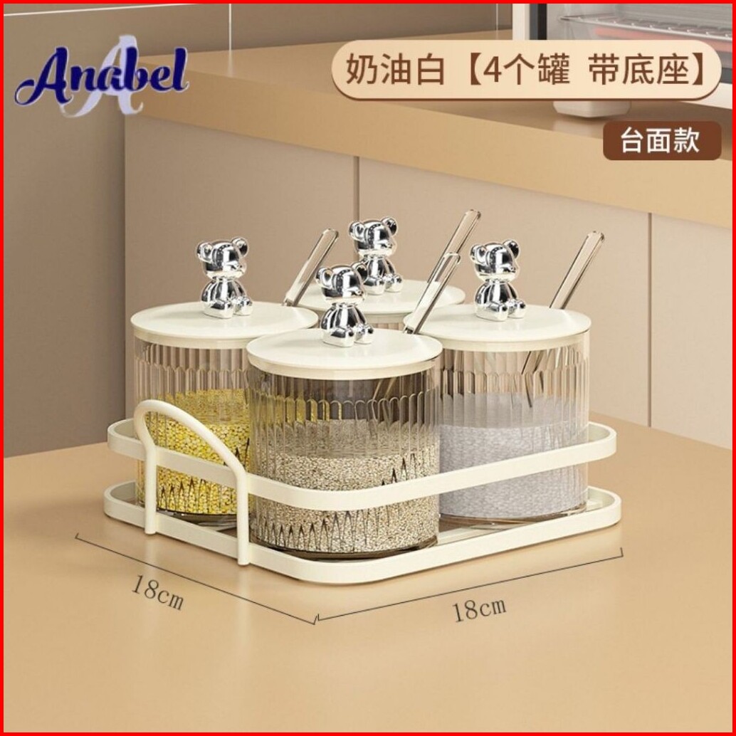Toples Bumbu Plastik Dengan Alas Tempat Besi Tutup Karakter Tempat Penyimpanan 4in1 Bumbu Dapur