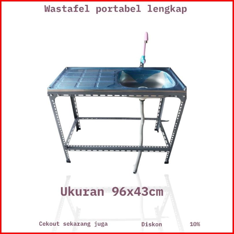 Wastafel Portabel Bak Cuci Piring Kitchen Sink Lengkap Ukuran 96x43cm