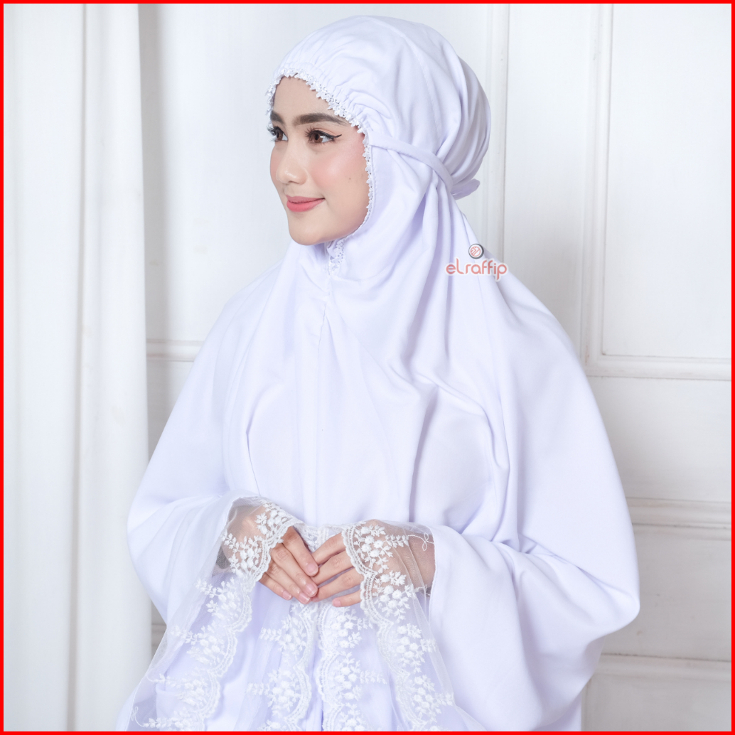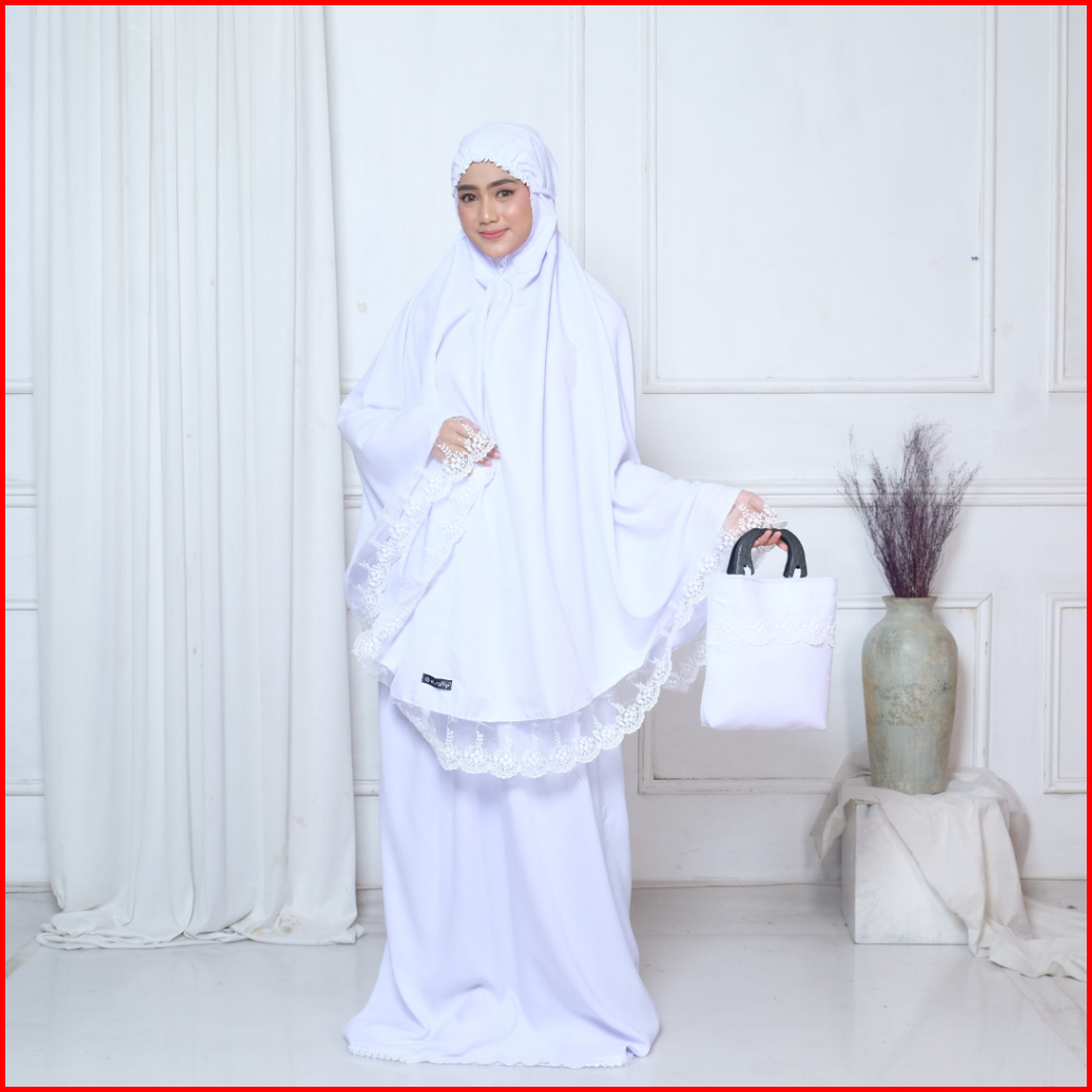 Mukena Putih Dewasa Katun Polos Renda Tile Bordir Syafani Series