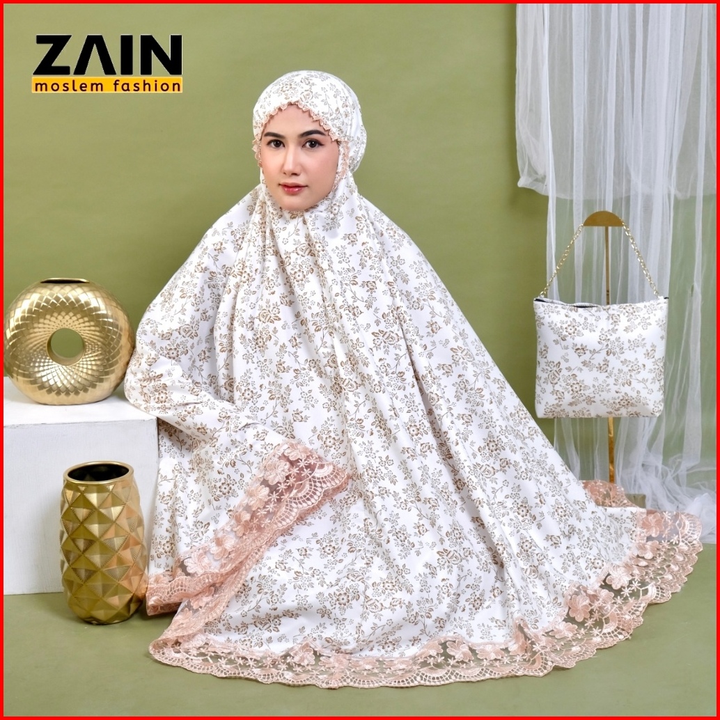 Mukena Dewasa Katun Poil Premium Print Bordir Bunga Mewah Exlusive - Zain Moslem Fashion
