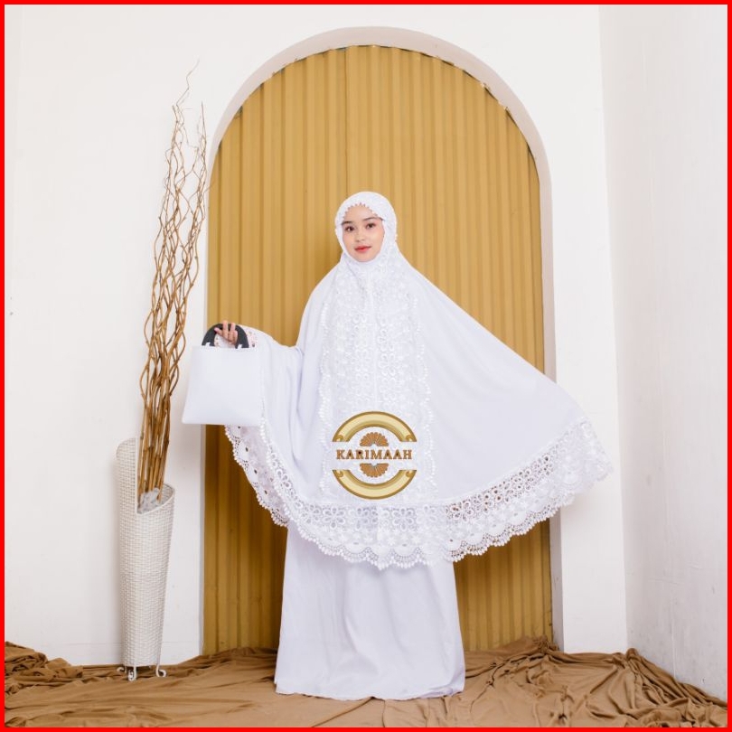 Karimaah Mukena Dewasa Putih Kd Premium Renda Prada