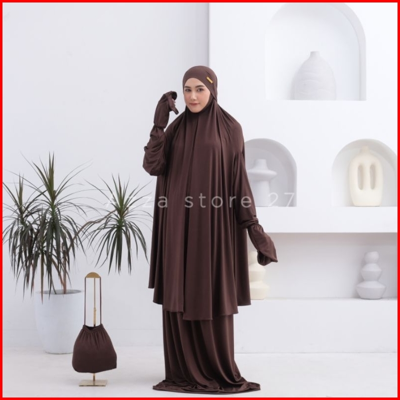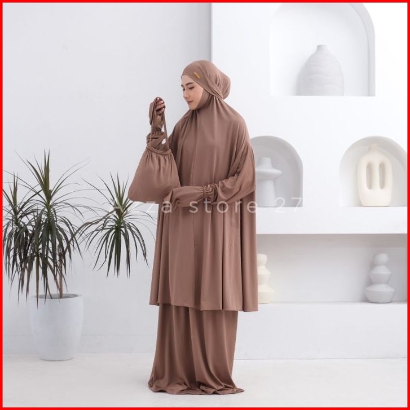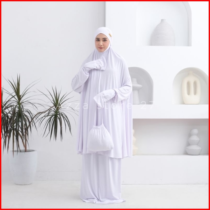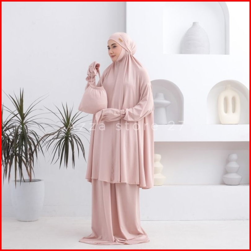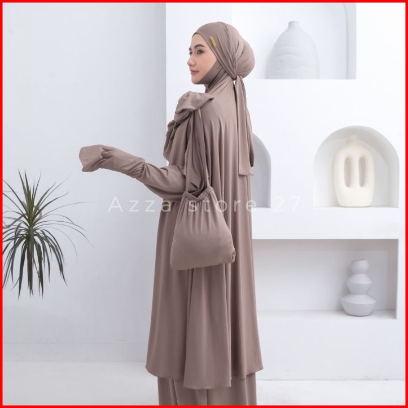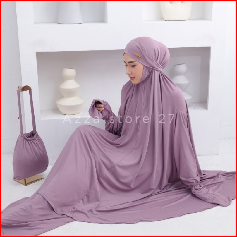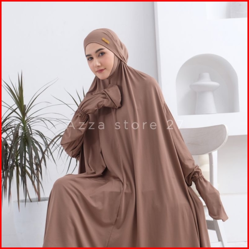 Azza Store27 - Mukena Dewasa Umroh Setelan Berlengan Lesti Penutup Dagu Malaysia Jersey Premium Series