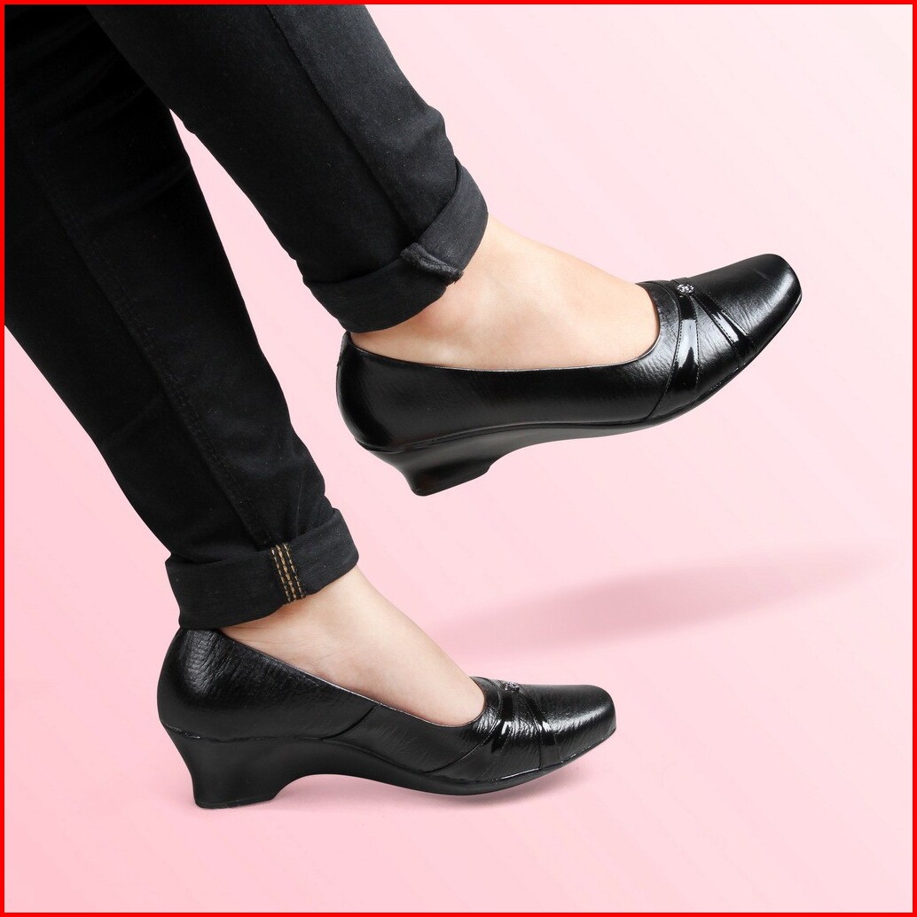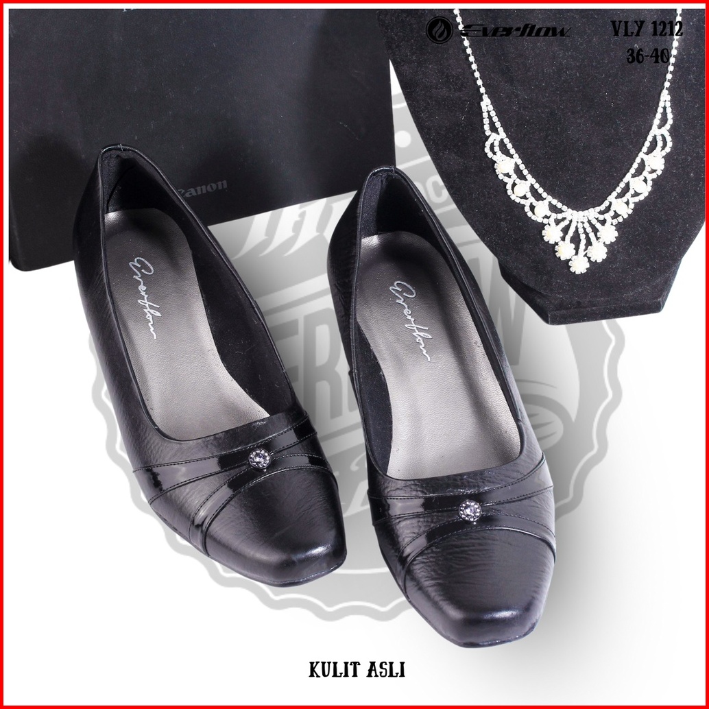 Everflow Vly1212 Sepatu Wedges Formal Pantofel Tinggi Wanita 4cm Kulit Asli