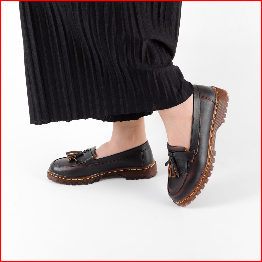 Sepatu Dokmart Wanita Loafer Kulit Cokelat Bros Up
