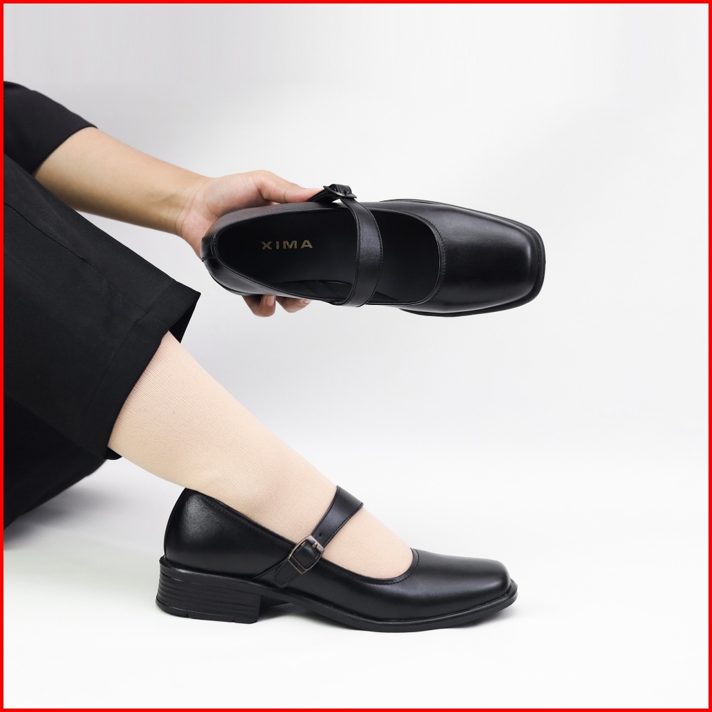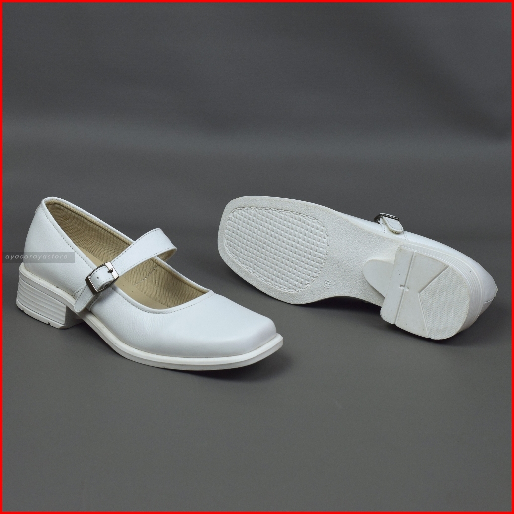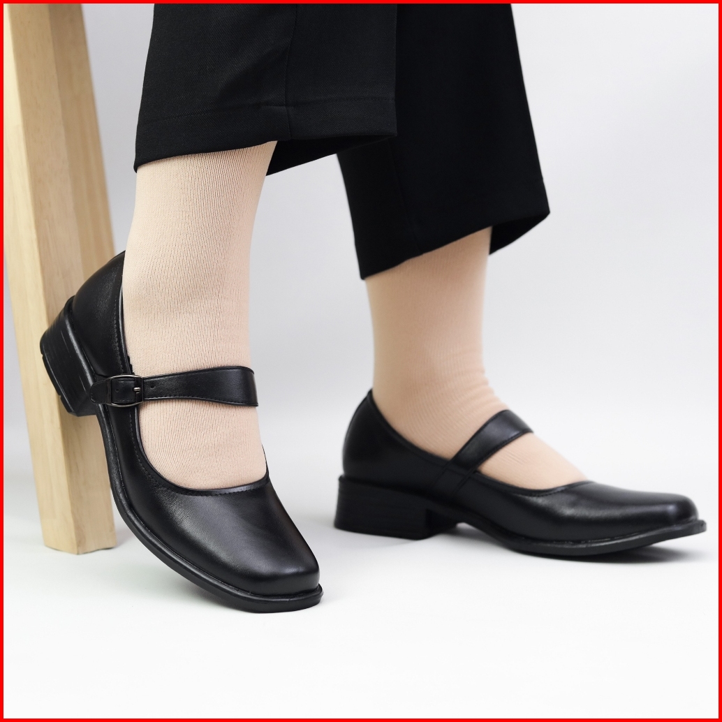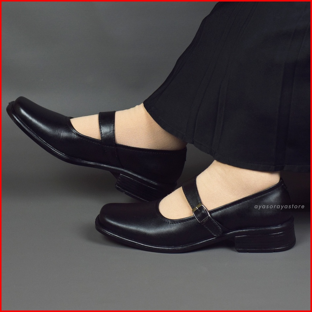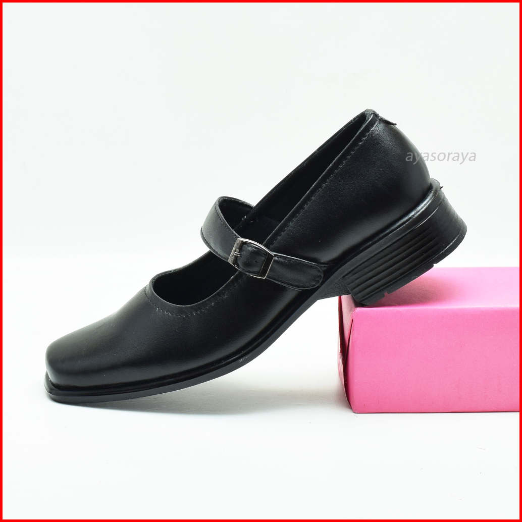 Sepatu Pantofel Paskibra Wanita Dinas Hak 3 Cm Untuk Sekolah Bahan Kulit Hitam Ukuran Besar 36 - 44