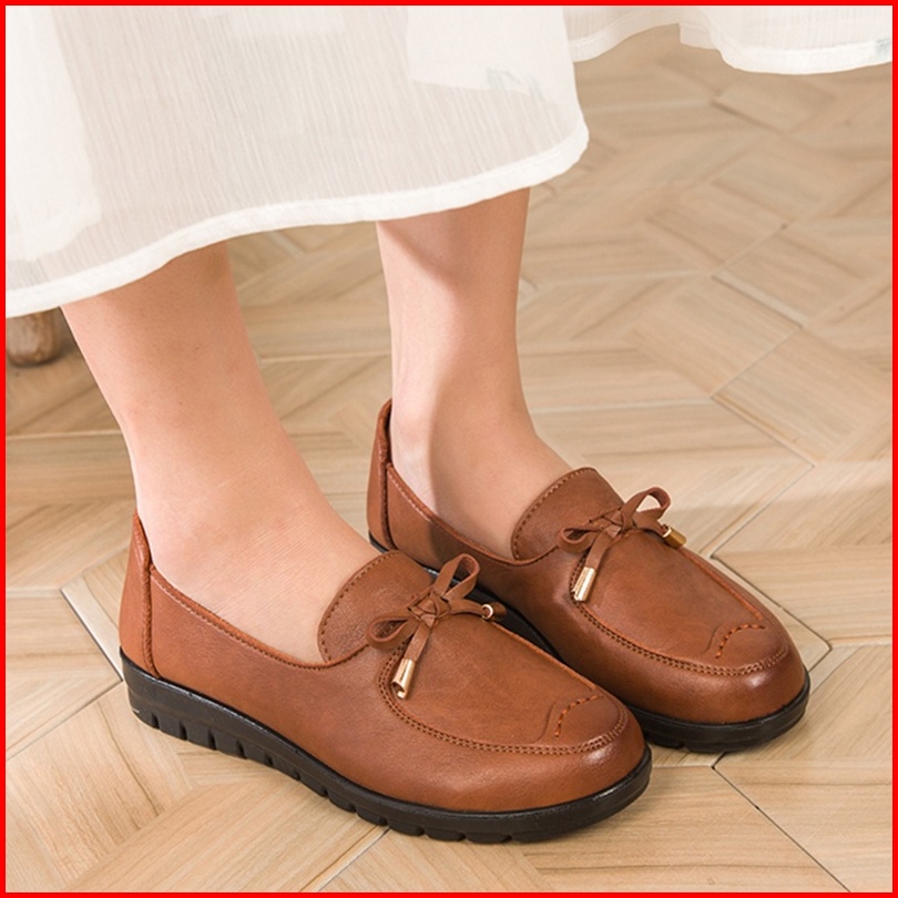 Qingshui Sepatu Wanita Sepatu Flat Wanita Kulit Korea Fashion Terbaru Sepatu Kantor Elegan Nyaman Bernapas Ringan