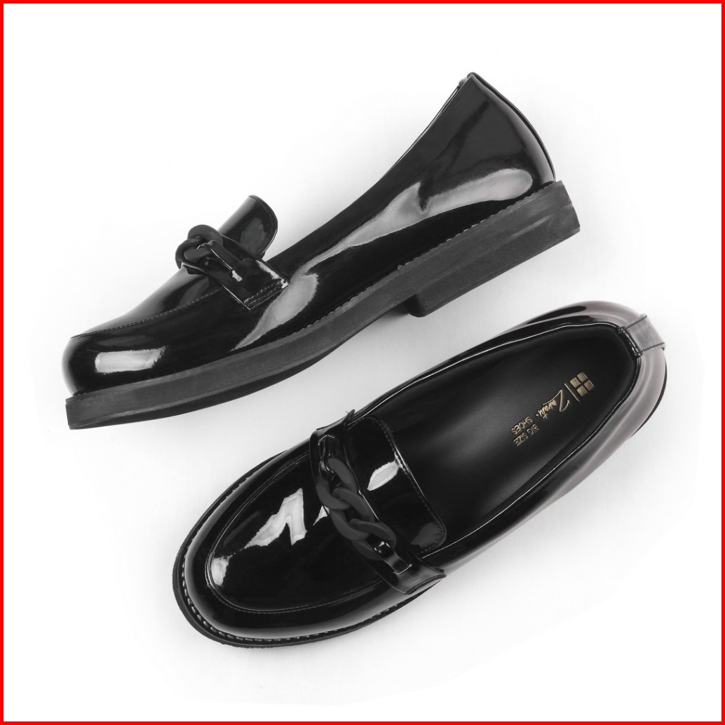 Zavatu Sepatu Docmart Casual Loafer Slip-on Wanita Big Size Jumbo 36-45 Hitam Glossy Stylish Zvt 450