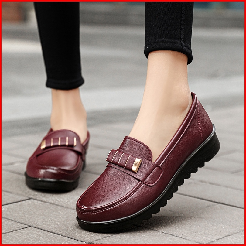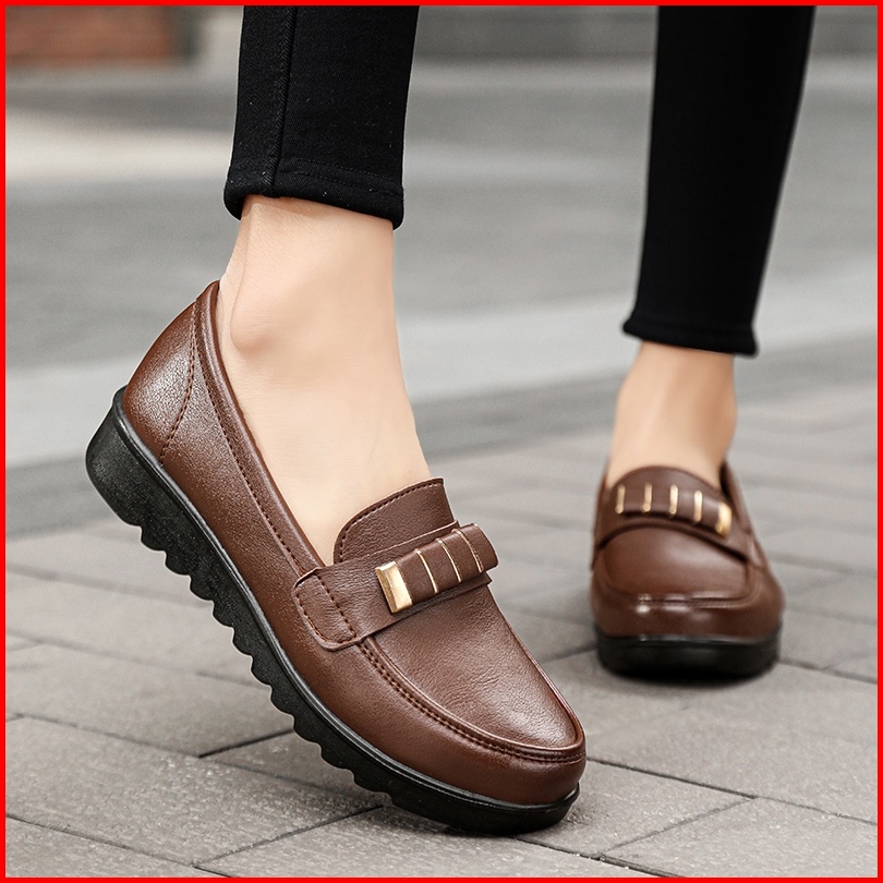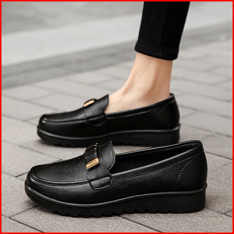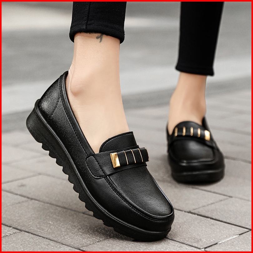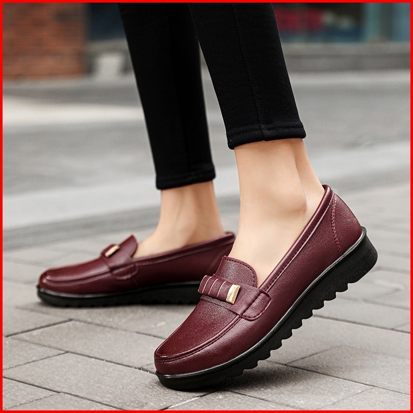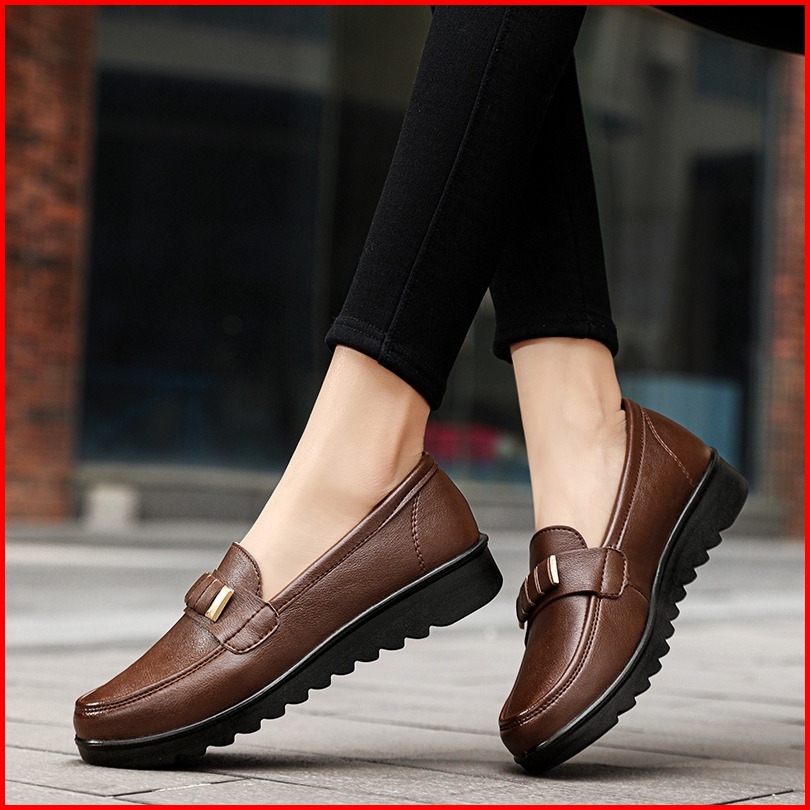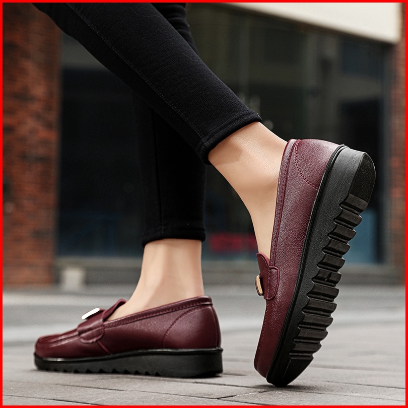 L101 Sepatu Flat Shoes Wanita Kulit Korea Kulit Asli Fashion Terbaru Sepatu Kantor Elegan Nyaman Bernapas Ringan