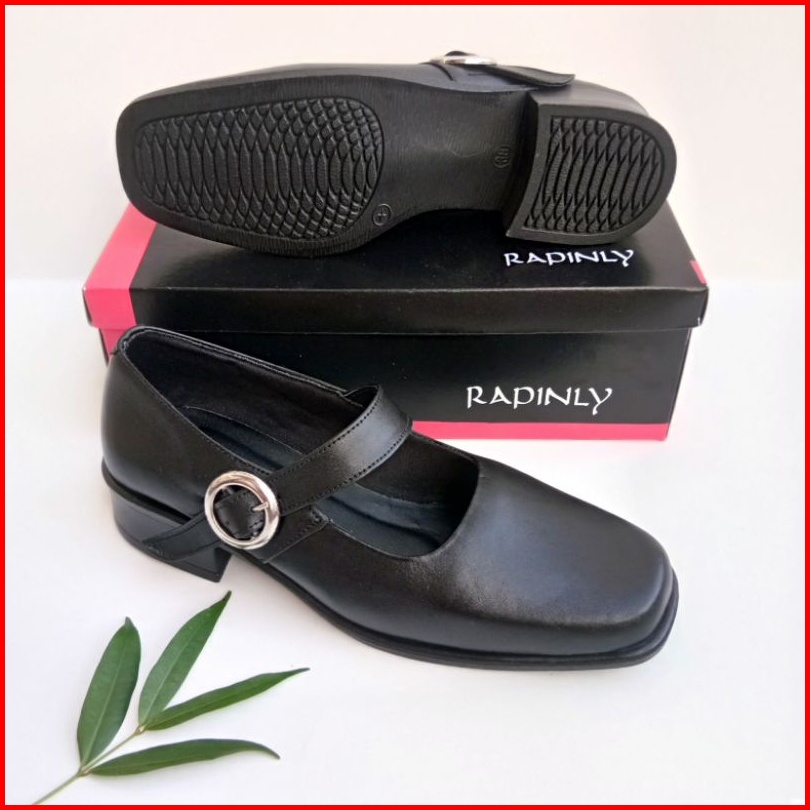 Sepatu Pantofel Paskibra Wanita Kulit Asli Hitam