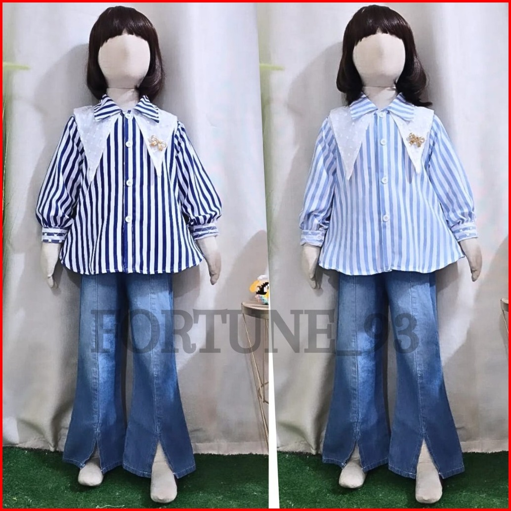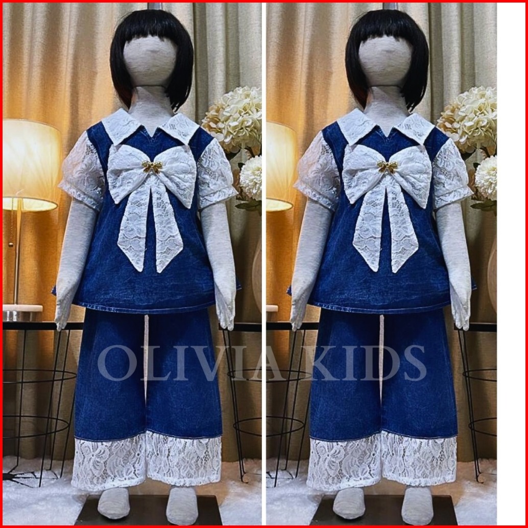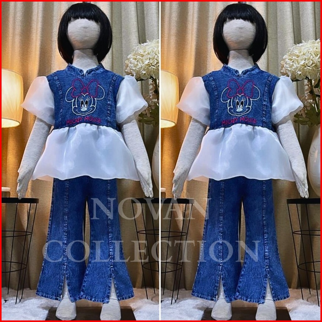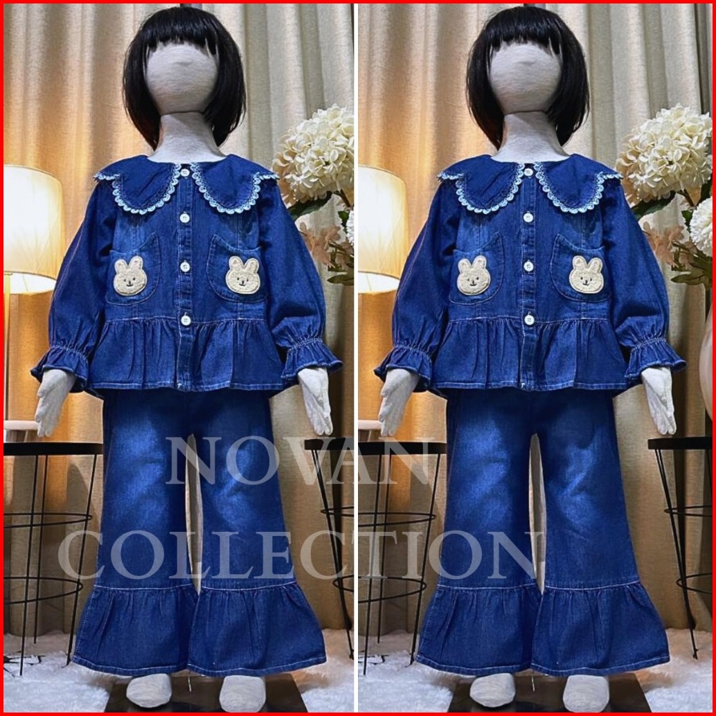 Stelan Skena Anak Perempuan Korean Style Kombinasi Bunga Bordir Usia 3 - 10 Tahun Celana Kulot Skena Jeans Terbaru 2025