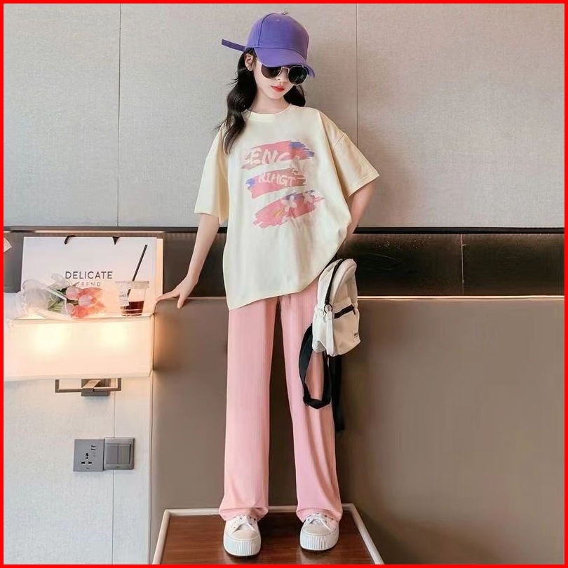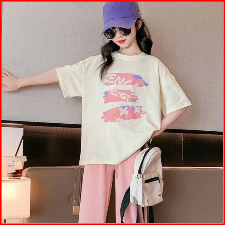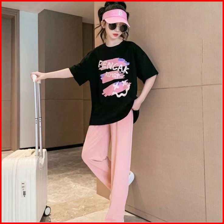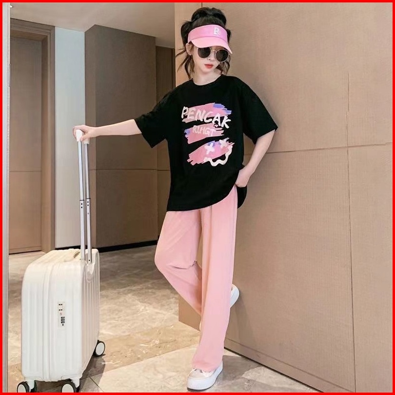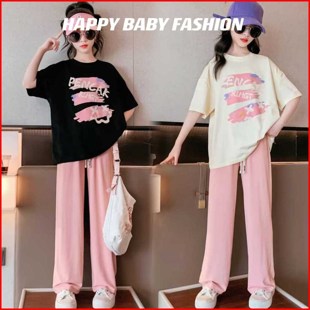 Happy Babynew 5-14 Tahun Baju Setelan Cewek Lengan Pendek Celana Panjang Impor Tz-46