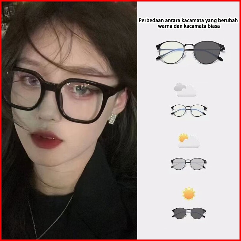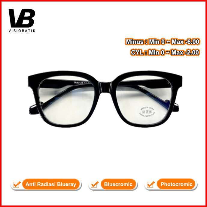 Visiobatik Kacamata Minus Lensa Bening Wanita Photocromic Anti Radiasi Blueray Kacamata Frametebal Tr90 Ringan Korea Sty