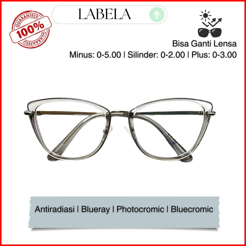 Labela - Kacamata Anti Radiasi Minus Photocromic 95290 Blueray Frame Cateye Unisex Kacamata Wanita Semi Kateye Demodas G