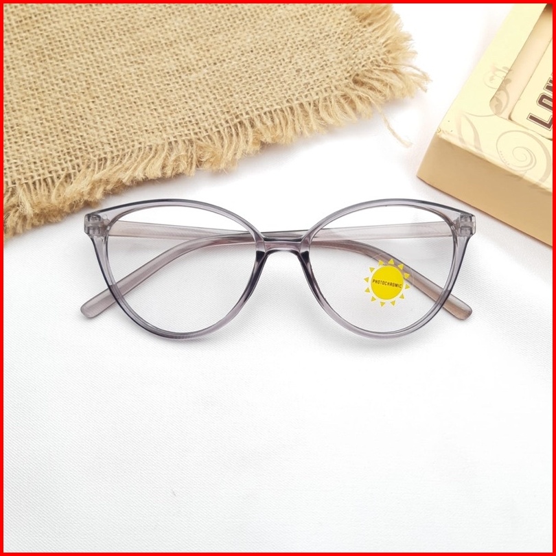 Paket Kacamata Cat Eye 608 Lensa Photocromic Anti Radiasi Bluecromic Bluray Kacamata Fashion Wanita Cat Eye Kecil Gratis