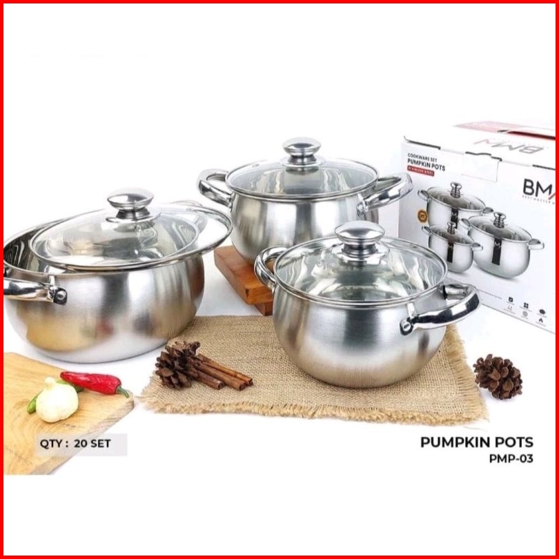 Panci Set Tutup Kaca Pumpkin Pots Merk Tergantung Stock