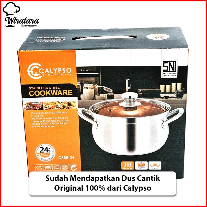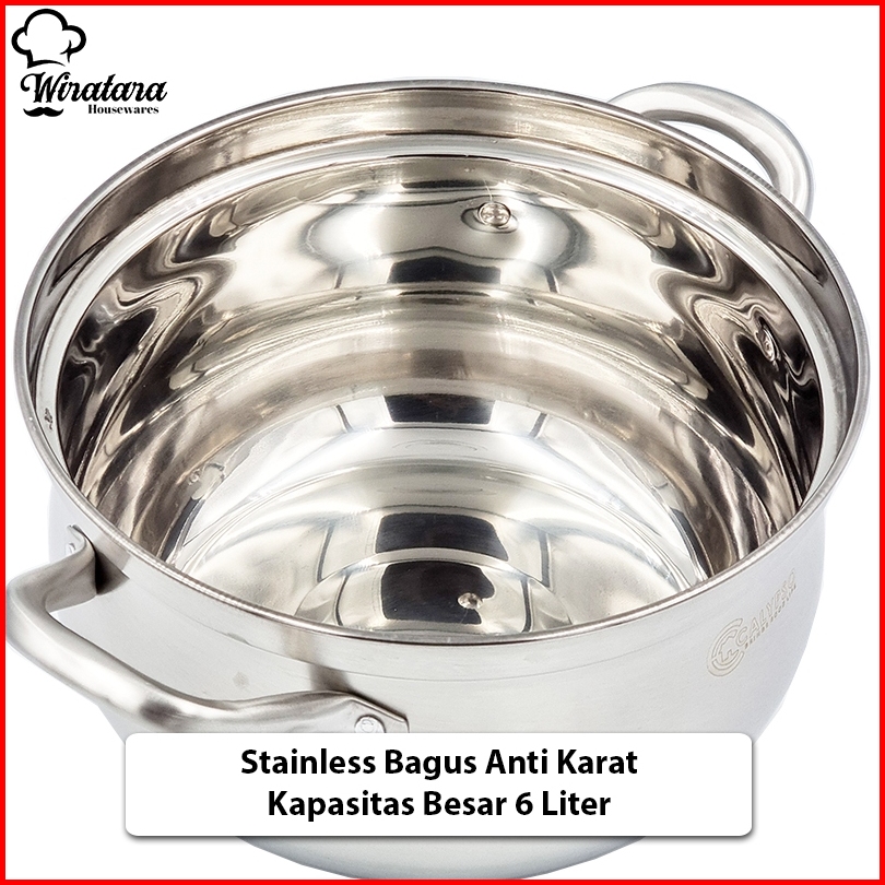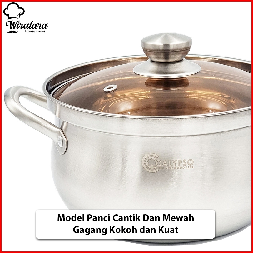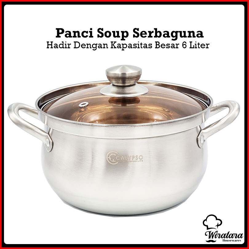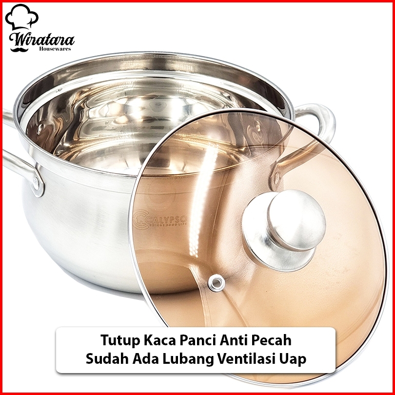 Calypso Panci Sup 6 Liter 24cm Stainless Tutup Kaca Soup Pot Panci Kuah