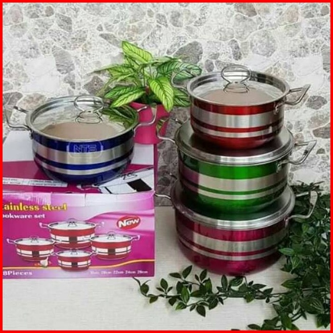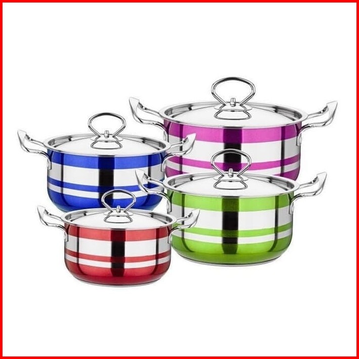 Panci Set 4 Pcs Rainbow Korea Pot Stainless Panci Set Warna - Warni