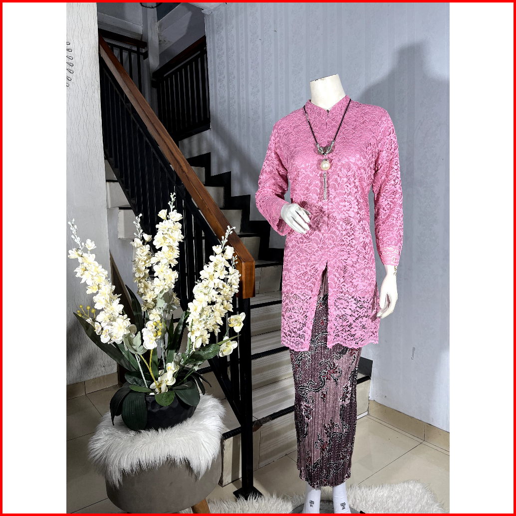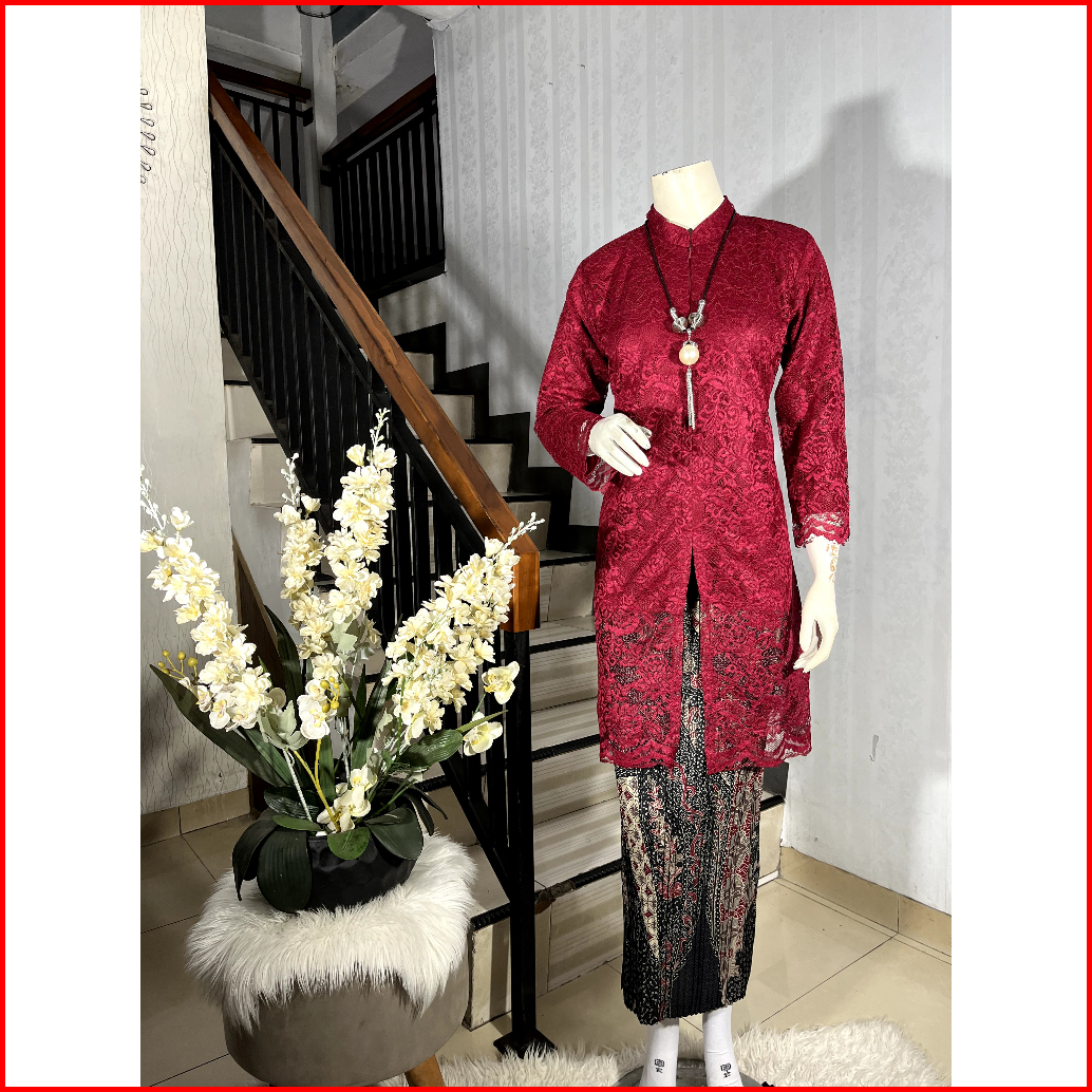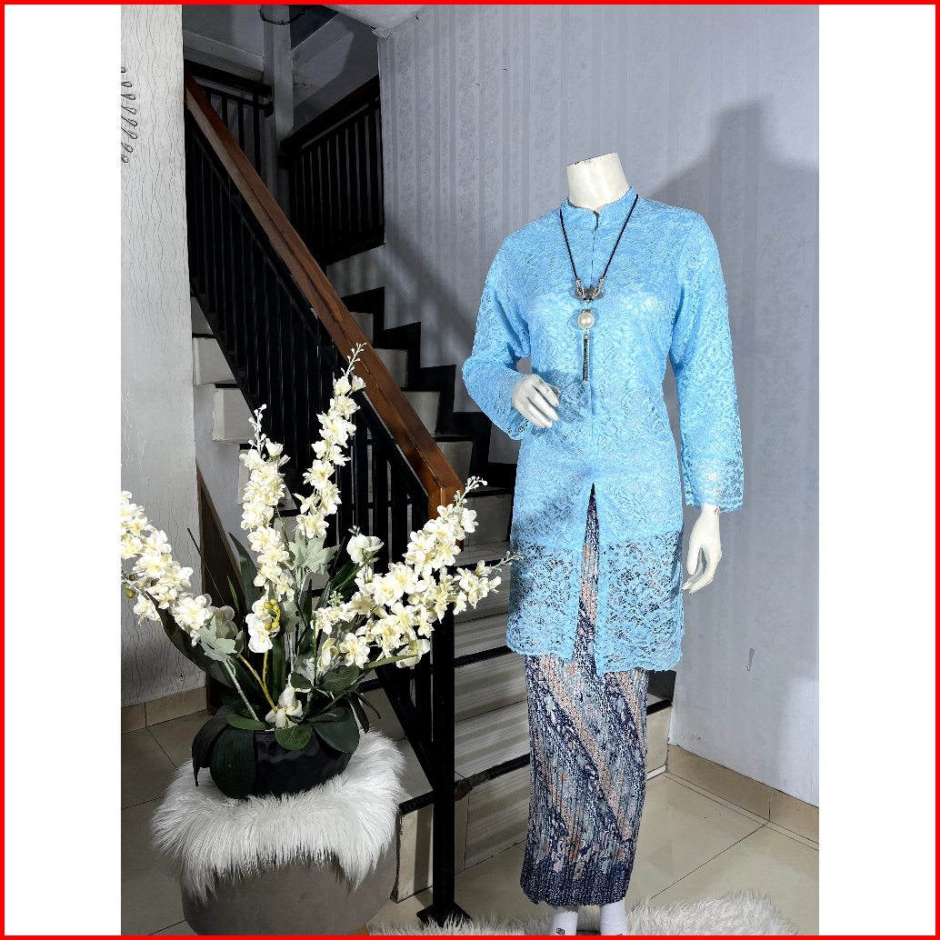 Kebaya Tunik Kerah Shanghai Stelan Atasan Kebaya Brokat Modern Modis Kondangan Kebaya Brokat Mewah