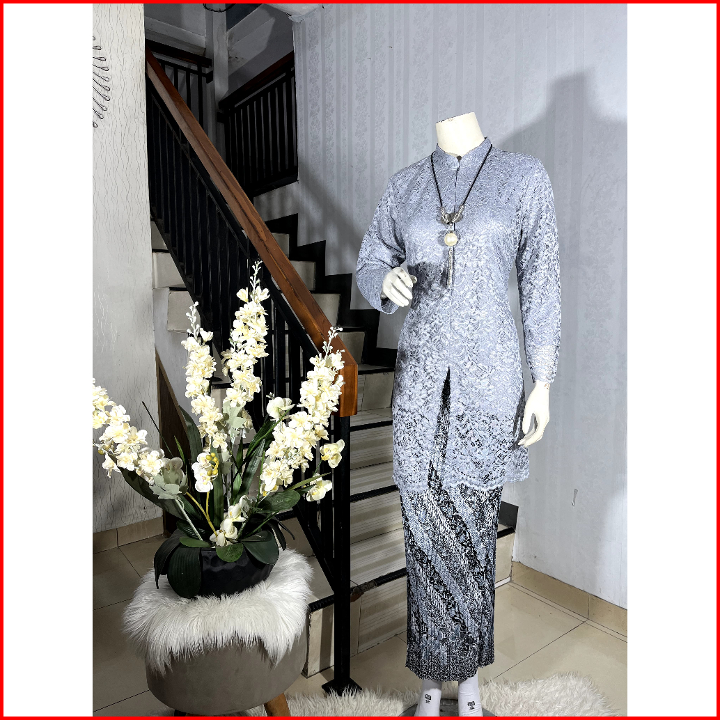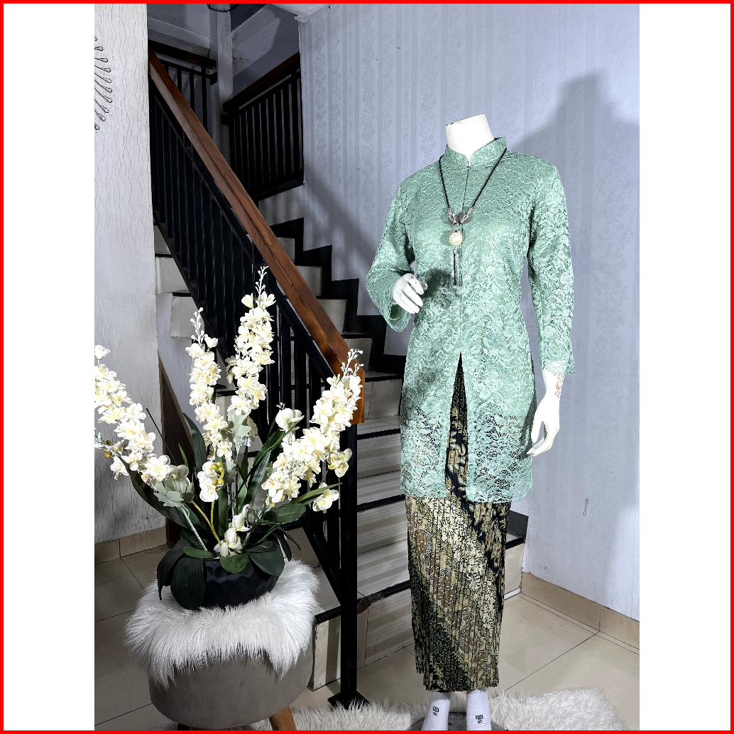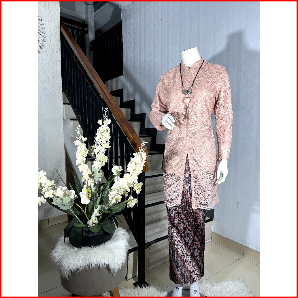 Kebaya Tunik Kerah Shanghai Stelan Atasan Kebaya Brokat Modern Modis Kondangan Kebaya Brokat Mewah