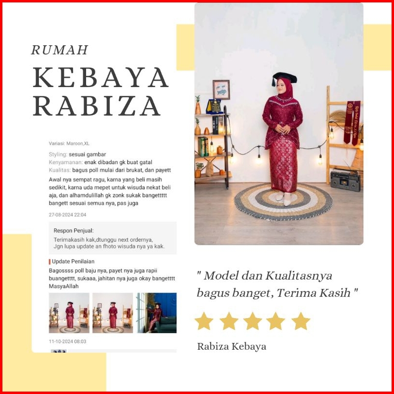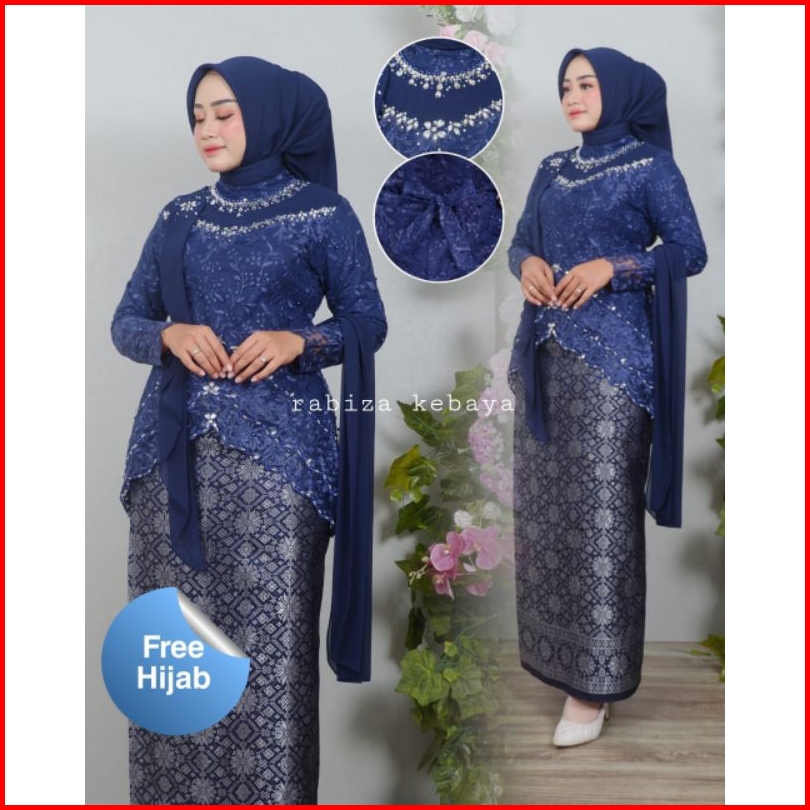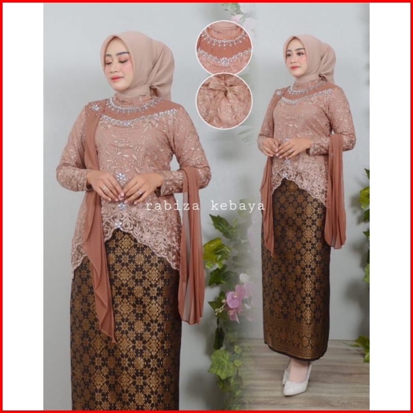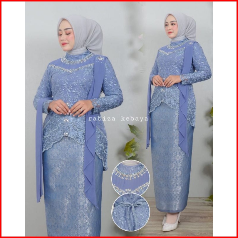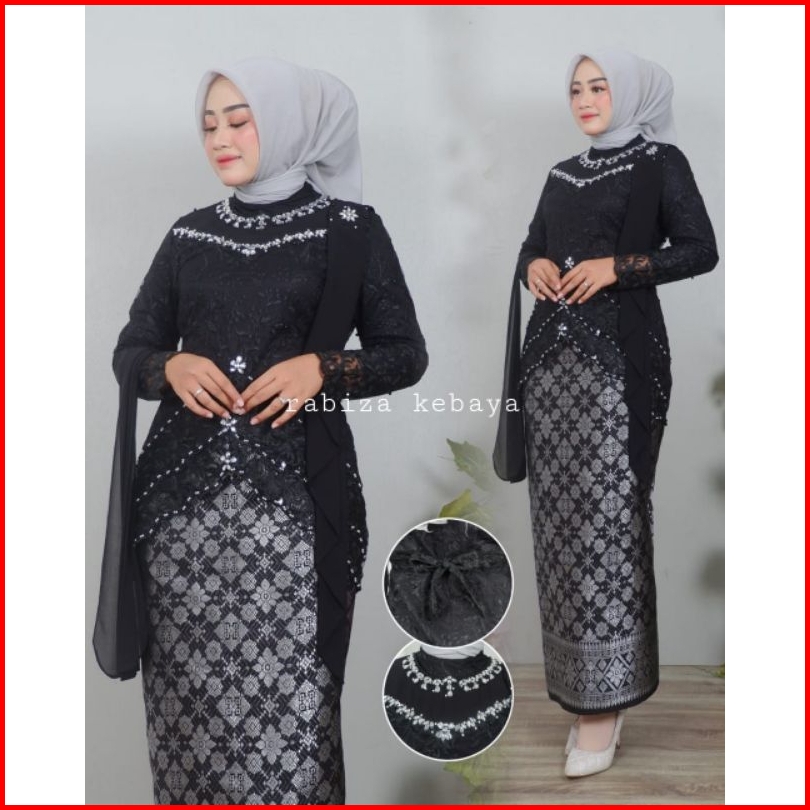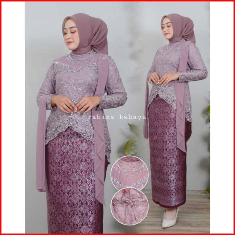 Stelan Kebaya Brokat Modern Qiyubi Selendang Kekinian Pesta Seragam Kondangan Wisuda Rok Songket